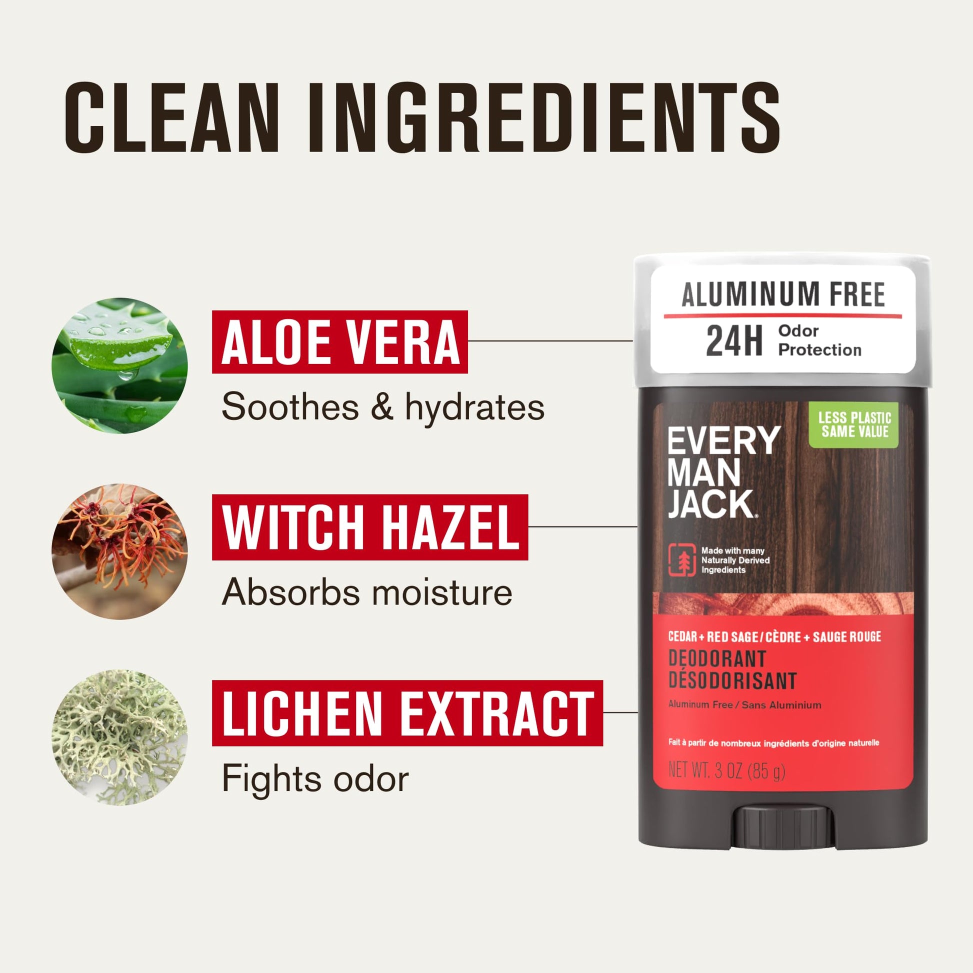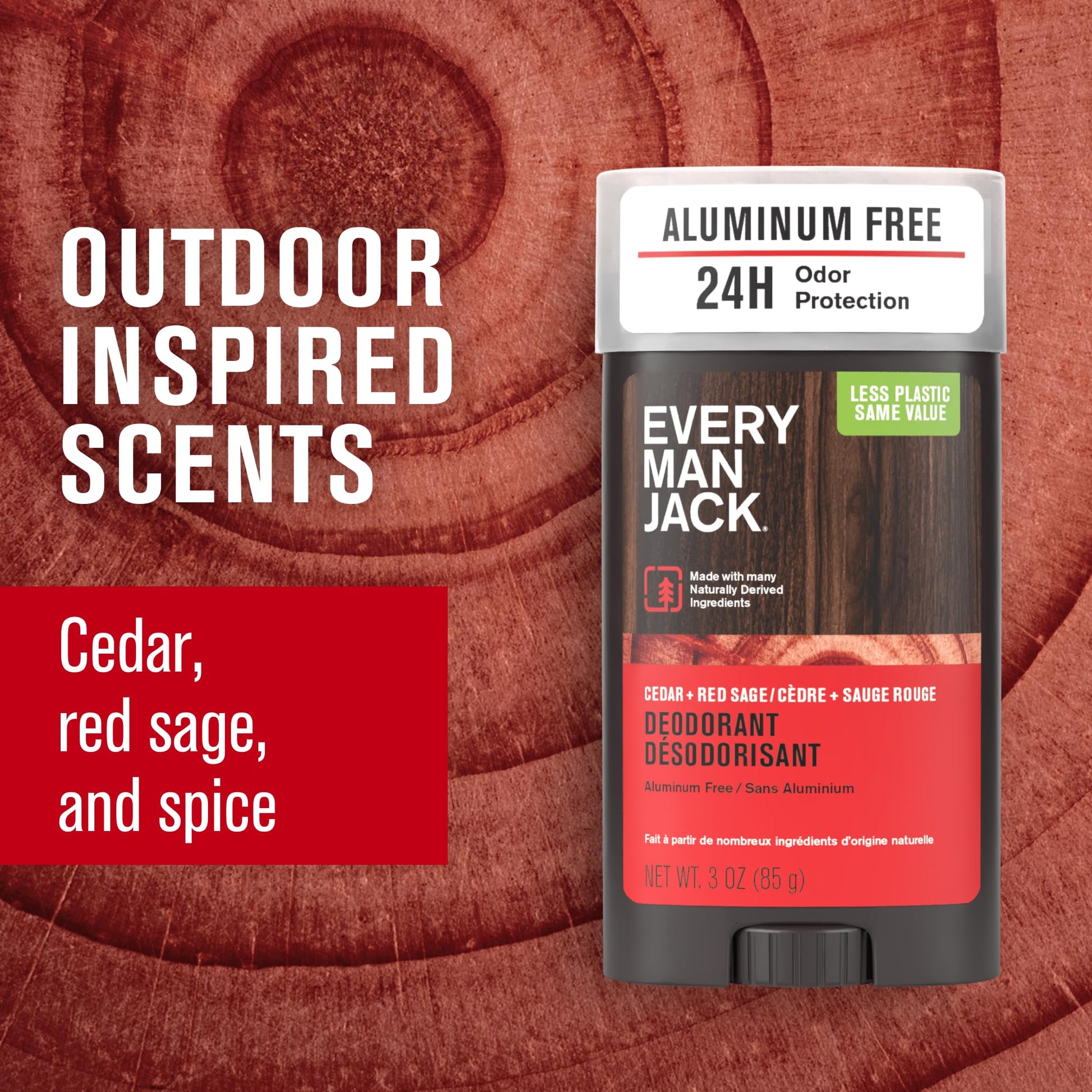 Every Man Jack Cedar + Red Sage Men’s Deodorant - Aluminum Free Deodorant - 24-Hour Odor Protection w/Naturally Derived Ingredients - 3oz (2 Pack)
