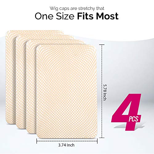 FANDAMEI Wig Cap, 4PCS Light Brown Mesh Wig Cap Net, Closed End Hair Mesh Net Wig Caps, Liner Weaving Caps for Women, Men, Kids