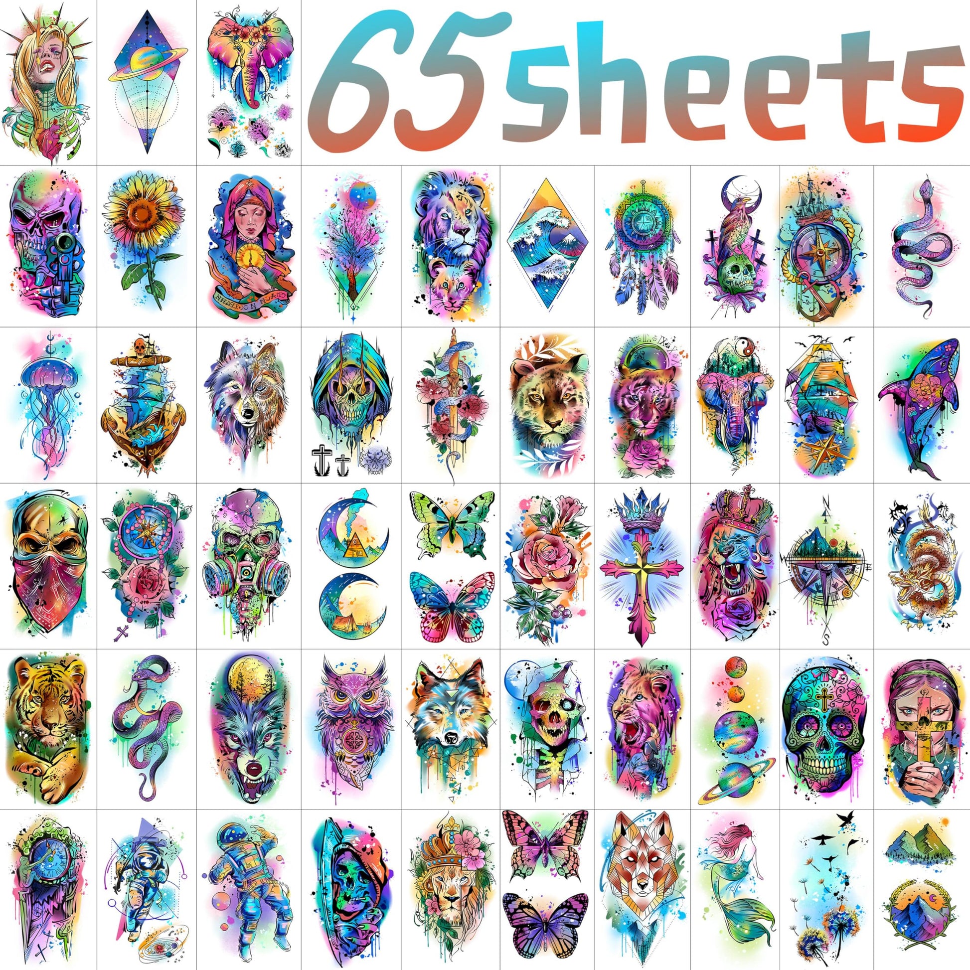 - 🐤【65 Sheets Watercolor Flower Temporary Tattoos For Women Girls Adults】Brand FANRUI Distinctive Design Colorful Floral Rose Temporary Tattoos For Women Girls Teens Men Daughters Son Lovers Kids Chilren Child DIY 3D Custom Tattoo Cover Up Snake Peony Cross Tiger Lion Compass Wolf Dragon Mountain Mermaid Skull Skeleton Elephant Gothic Gangster Owl Space Planets Moon Sea Wave Dream Catcher Butterfly Sunflower Anchor Astronaut Tatuajes Temporales Kids Autocolante.