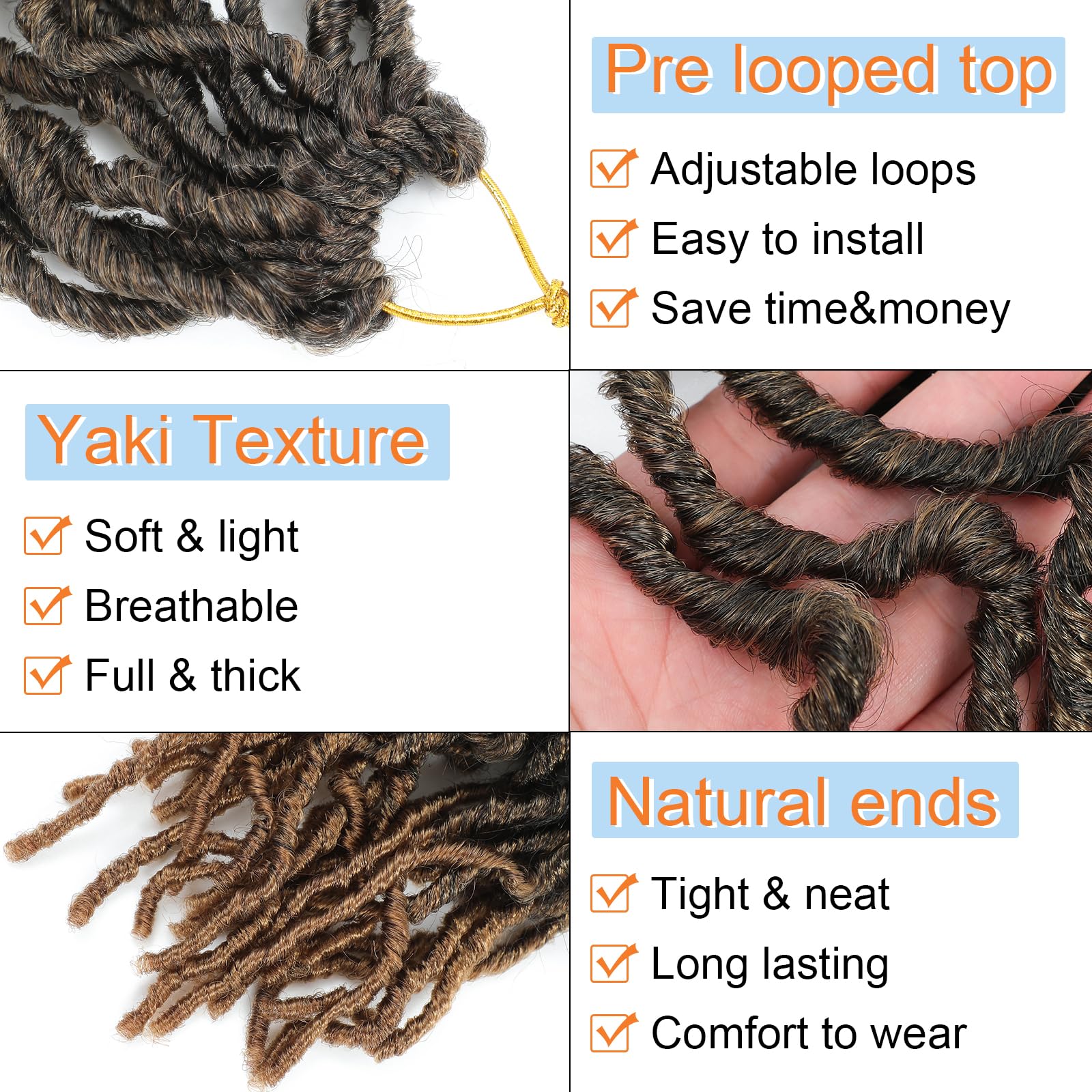 - Easy Installation: Our soft locs crochet hair come pre-looped for quick and easy installation. Simply crochet them into your hair for a secure and hassle-free fit.