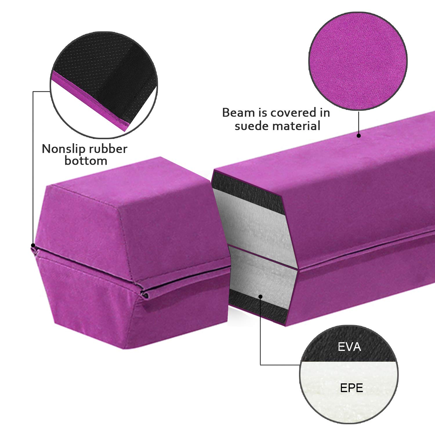 - THICK EXERCISE PAD THAT WONT FLATTEN OUT: Made of high density EVA and EPE foam, our padded beam is covered in suede-like material with a nonslip rubber bottom for a soft sturdy practice surface that won't flatten over time