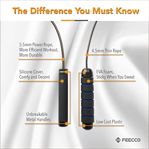 FEECCO 1/2 lb Weighted Jump Rope for Boxing, Cardio, Crossfit Workout, 8~11ft Range Adjustable Length Steel Ropes with Ball Bearings and Metal Handles, Suitable for Men and Women