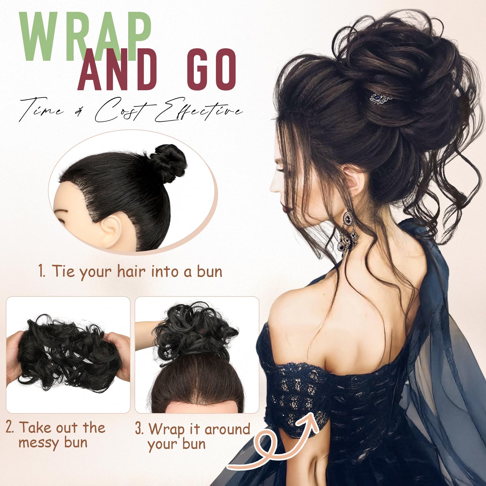 - 【Adjustable Size】: The hair bun hair piece is very easy to wear with a elastic hair band. messy hair bun can roll two turns around in your hair ponytail bun. If you feel that the hair bun is too big, you can secure with hair pins, which will make the hair bun tight on your hair