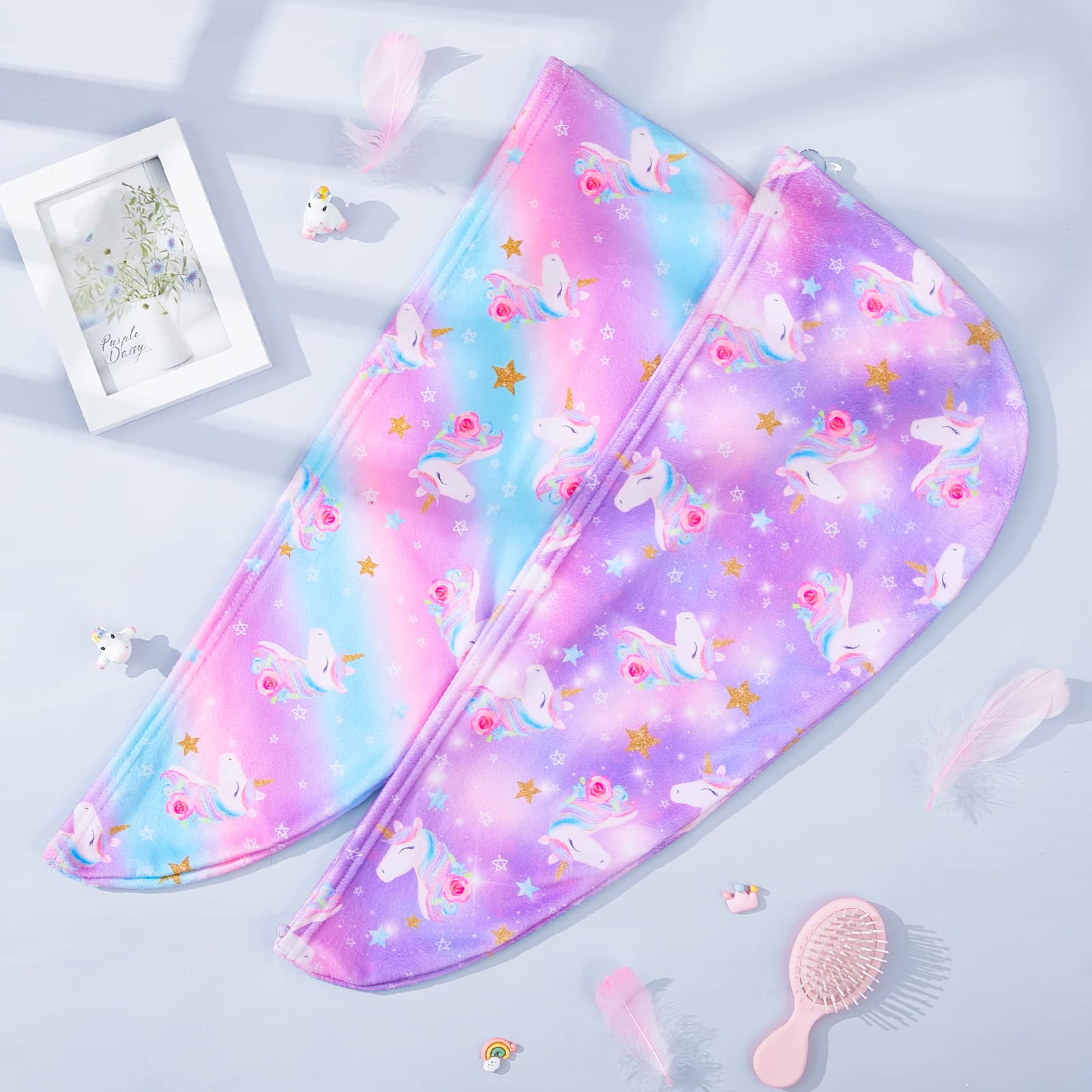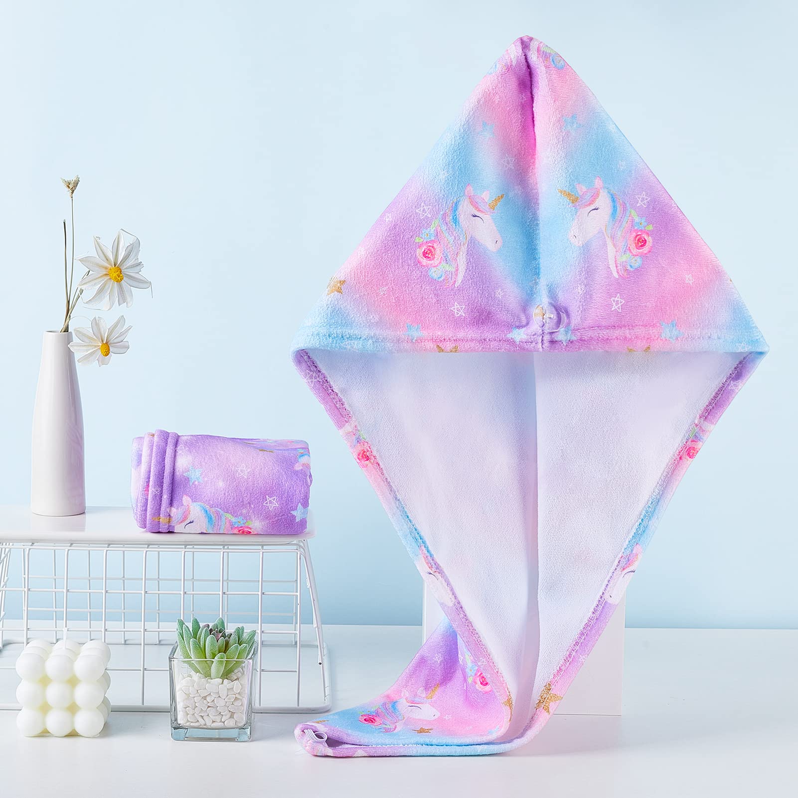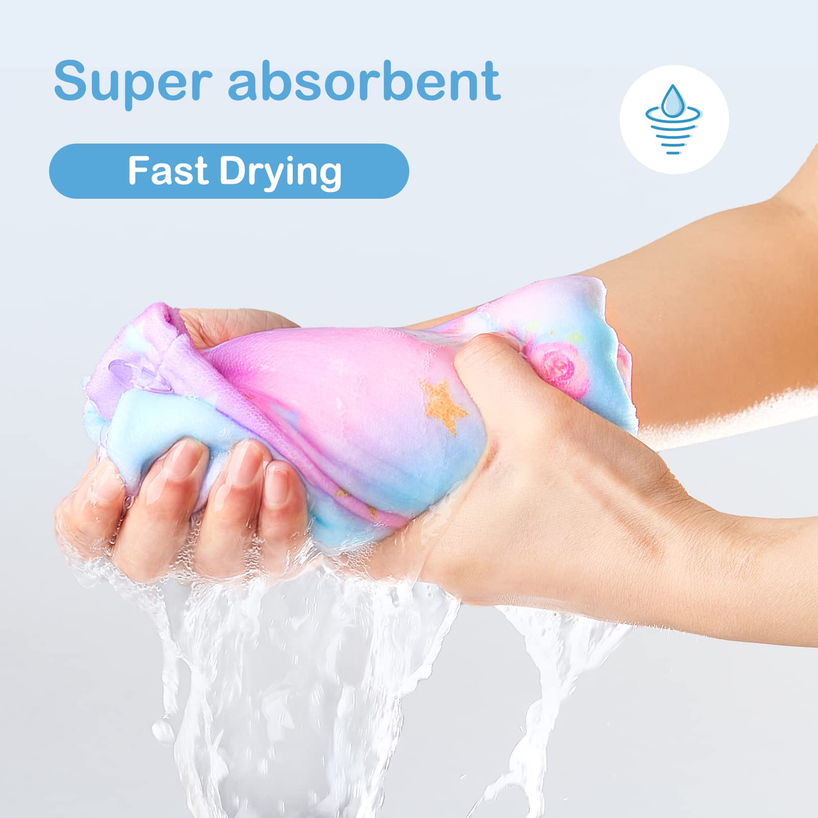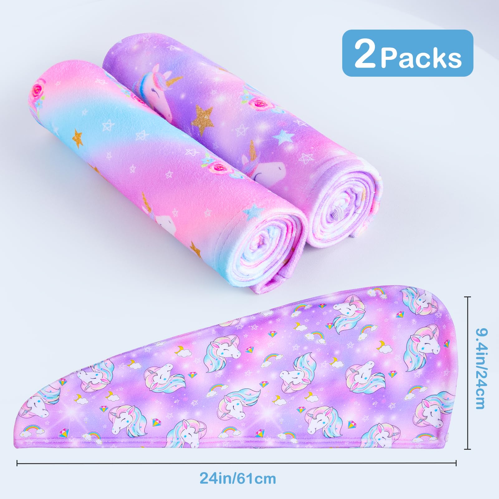 - Unique Hair Towel Wrap: Our microfiber hair towel uses rich colors and bright printed fabrics to attracted the girls attention; No girls can resist the great charm of cute and unique pattern; Each pack contains 2 different colors, then girls can share kids towels with friend or sister