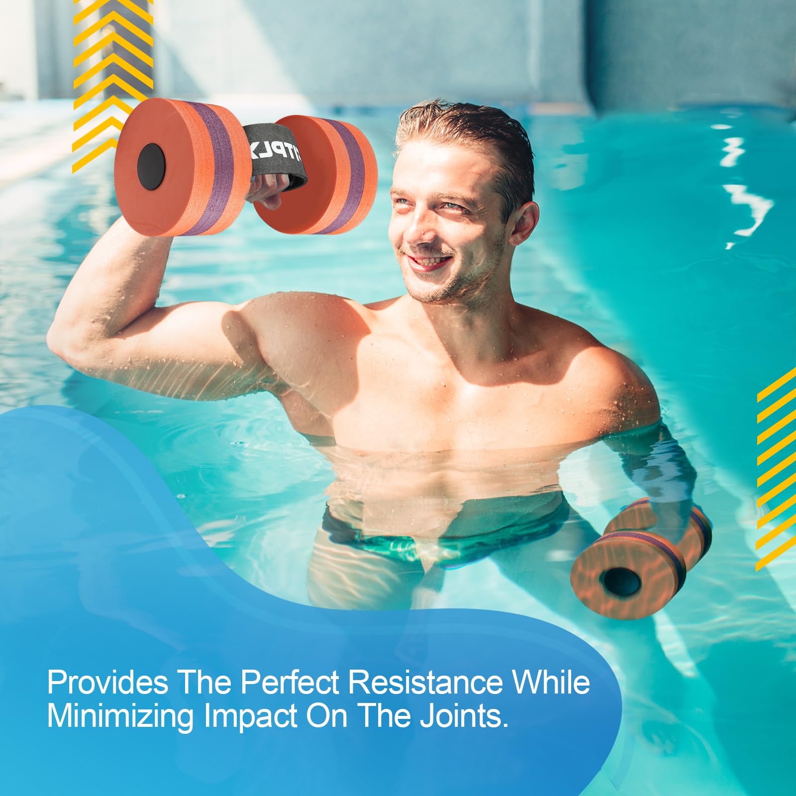 Fitply Water Weights Aquatic Pool Dumbbells for Pool & Water Exercise - EVA Foam Pool Weights, 2PCS Lightweight Water Dumbbells, Swim Weights and Water Aerobics Weight Loss Pool Exercise Equipment