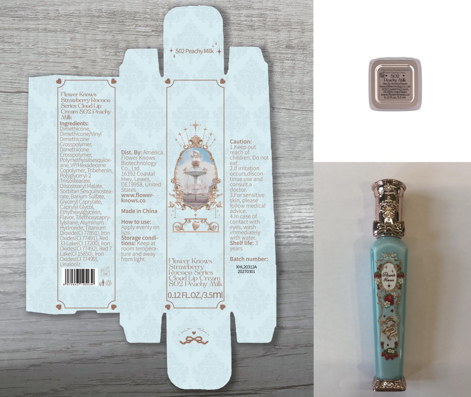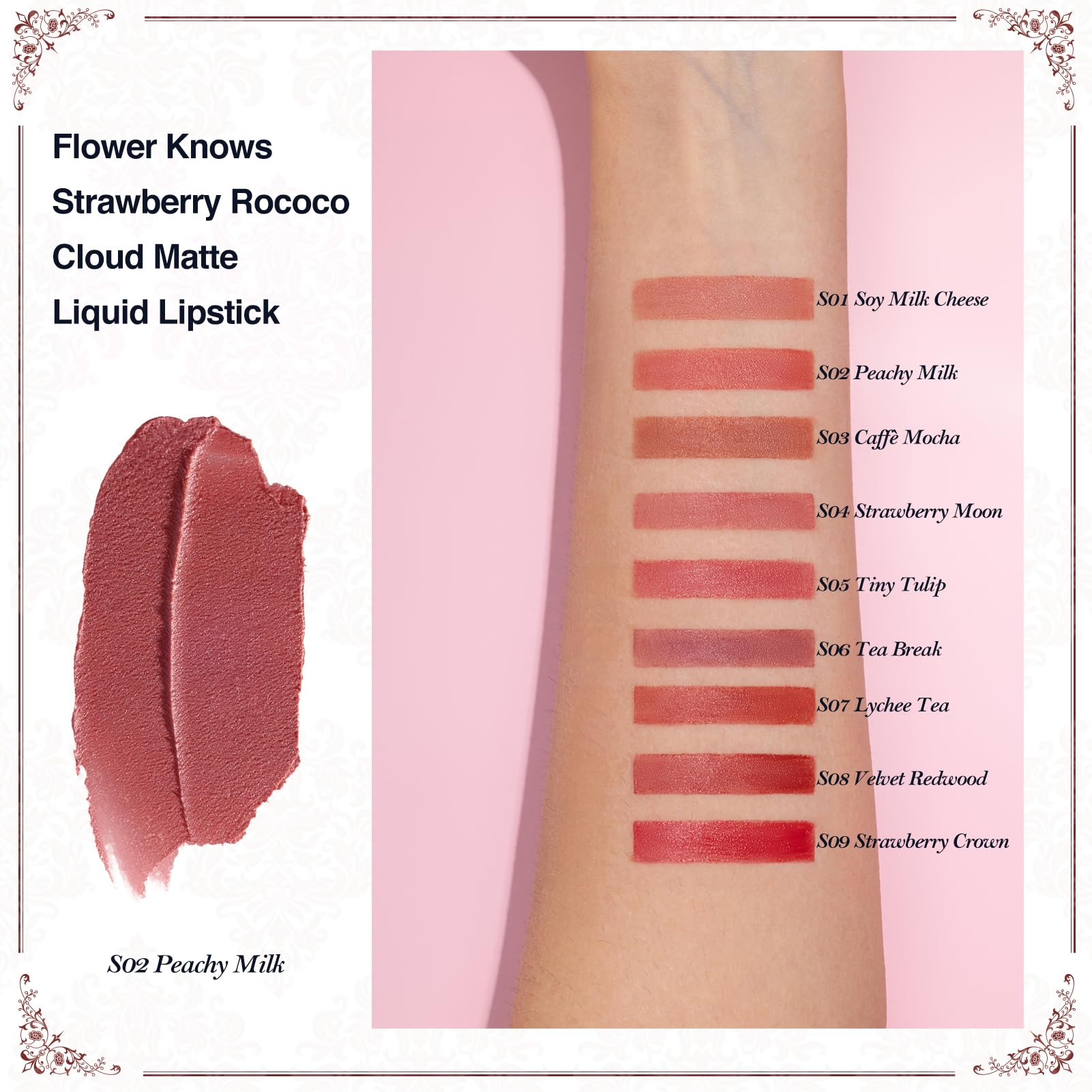 Flower Knows Strawberry Rococo Cloud Lip Cream Matte Liquid Lipstick-Long Lasting&Highly Pigmented Lip Stain -Velvety Waterproof Lip Makeup for Girls&Women-0.12 Fl Oz,1 Count(S02 Peachy Milk)