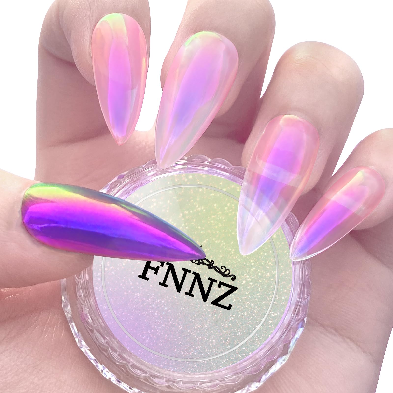 - Unicorn Chrome Effect: FNNZ unicorn chrome nail powder with no-wipe topcoat creates stunning iridescent mirror nails for intense reflections and a dazzling aurora mermaid effect