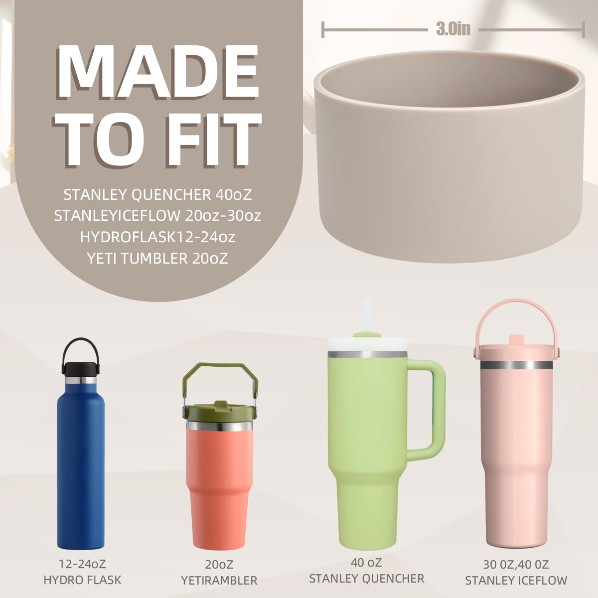 - Fit Most Brand: The silicone boot is specially designed to fit for Stanley Adventure Quencher H2.0 (30/40oz) and Stanley IceFlow 20oz 30oz Tumblers and Also fits Hydro Flask Wide Mouth (12/16/18/20/24 oz), Hydro Flask Standard Mouth (18/21/24 oz), Yeti Rambler Tumbler(20/30 oz), Yeti Rambler Travel Mug(20/30 oz), Simple Modern Tumbler (20/24/28/40 oz), Simple Modern Summit (14/18/22 oz) and Ascent (12/17/20/24 oz), Vmini Wide Mouth(12/18/24 oz), Vmini Standard Mouth(12/18/22 oz) and More.