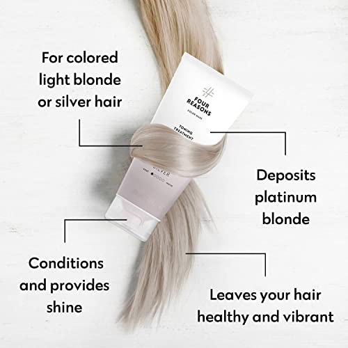 - REFRESH HAIR COLOR AND ELIMINATE YELLOW TONES: Use instead of a regular conditioner to maintain a cool blonde. Note that your hair’s porosity, condition and current shade affect the result’s evenness. Pair with Four Reasons Color Mask Platinum Shampoo for an even stronger toning effect.