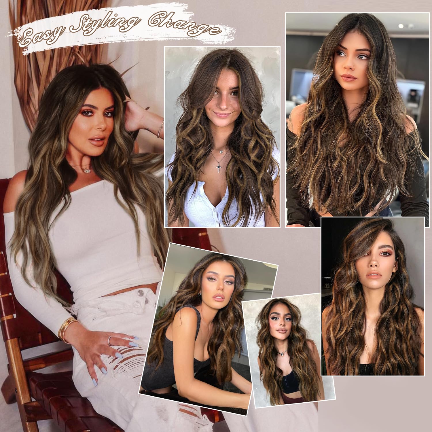 Color: Wavy-Brown Highlighted Caramel Blonde