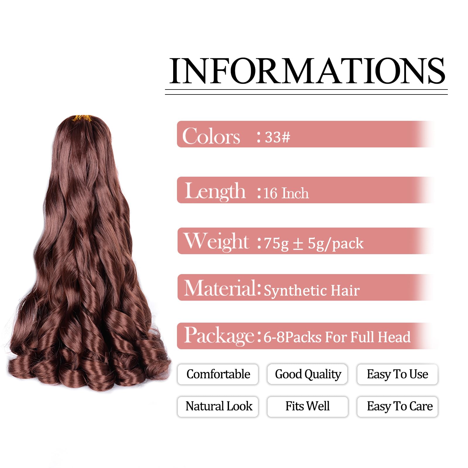 French Curl Braiding Hair 16 Inch Curly Braiding Hair Pre Stretched 75g/pack 33# French Curl Crochet Braids Synthetic Bouncy Braiding Hair Curly Ends for Women Hair Extensions (16inch,8 packs,33#)