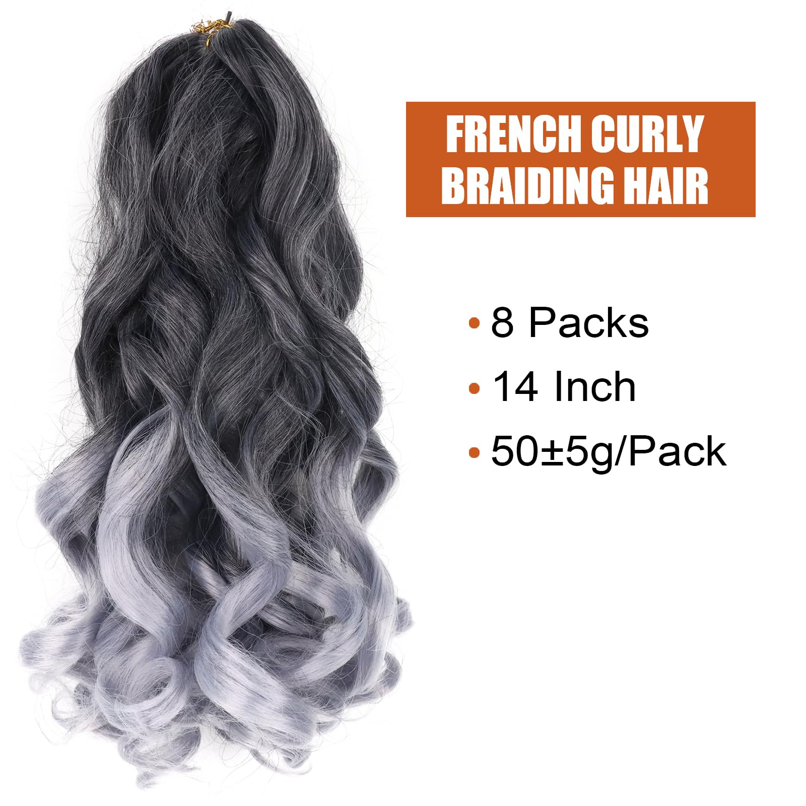 French Curly Braiding Hair 14 Inch 8 Packs Curly Braiding Hair Pre Stretched for Goddess Braids French Curls Braiding Hair With Curly Ends French Curl Crochet Hair for Black Women(T/Gray)