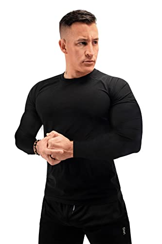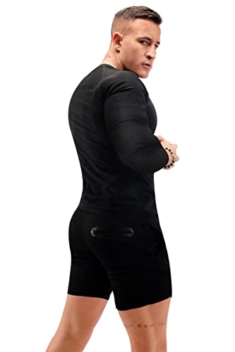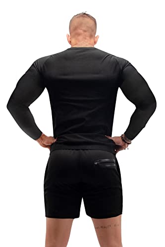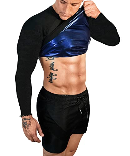 FUXERT Sauna Shirt for Men Long Sleeve Sauna Suit Sweat Compression Top Weight Loss Body Shaper for Workout Sports(BK S)