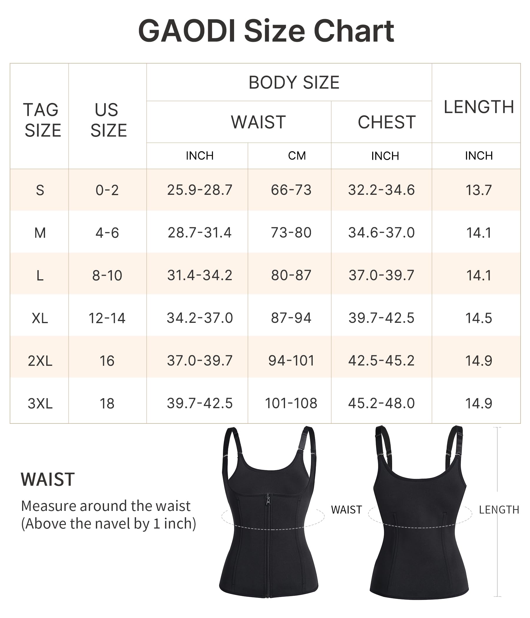 GAODI Women Waist Trainer Vest Slim Corset Workout Sweat Tank Top Zipper Compression Shirt Sauna Suit Body Shaper