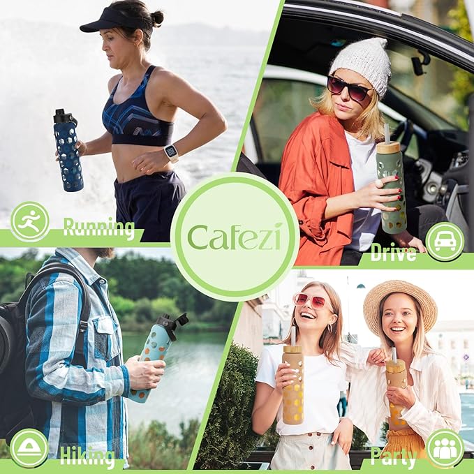 - BPA FREE&EASY TO CLEAN: Wide mouth design makes it easy to add ice cube. The glass drinking tumbler is dishwasher safe,easy to clean and hygienic.the lids needs to be washed by hand ,The silicone sleeves provide better grip and protection to the water bottle,BPA Free.