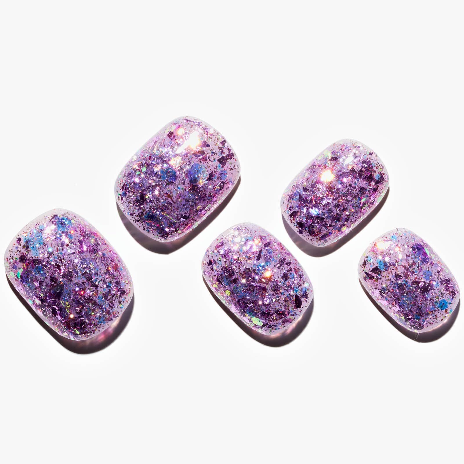 GLAMERMAID Extra Short Press on Nails, Glitter Purple Fake Nails Short Squoval, Natural Round Square Glue on Nails Glossy Gel, Acrylic False Nail Kits for Women, Reusable Stick on Full Cover Nails