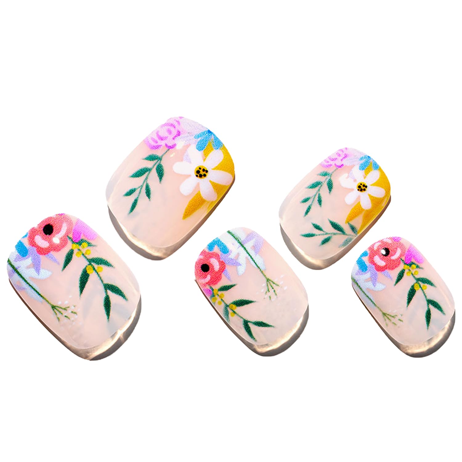 GLAMERMAID Nude Floral Extra Short Press on Nails, Pink Daisy Fake Nails Short Squoval, Natural Round Square Glue on Nails Glossy Gel, Acrylic False Nail Manicure Kit for Women, Reusable Stick on Nail