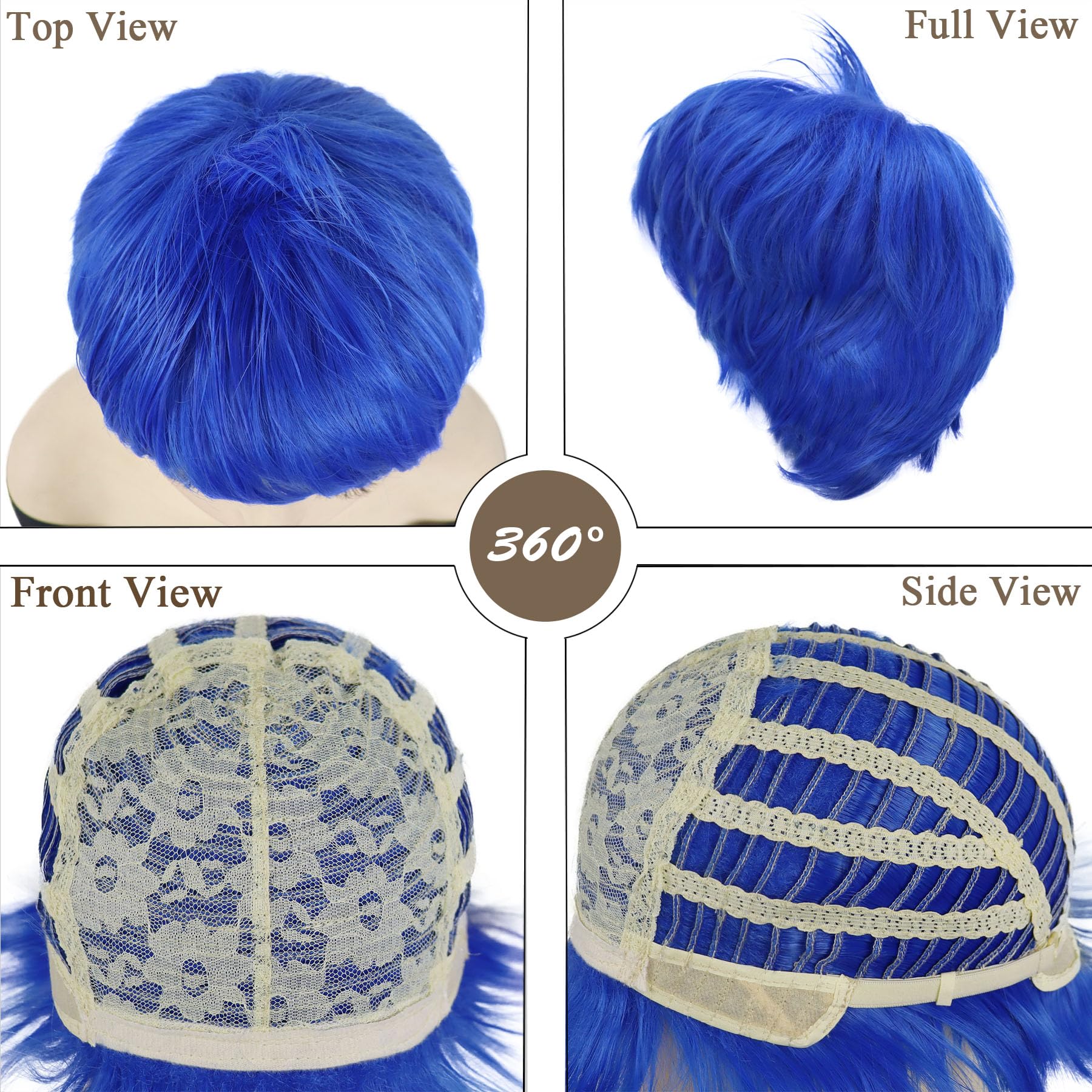 - Say goodbye to uncomfortable wigs with the GNIMEGIL Blue Short Wig, known for its breathability and skin-friendly materials. The wig is easy to style and care for, making it a convenient choice for any event.