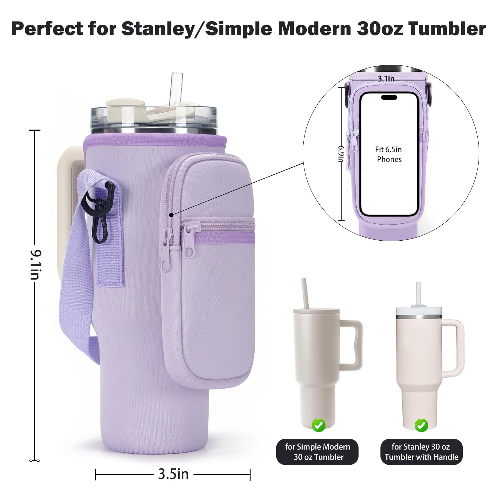- Design for Stanley 30oz Tumbler with Handle:Our water bottle holder with strap is designed for Stanley Quencher H2.0 30 oz and for Stanley Adventure Quencher 30 oz. Delicate stitching and tight design give the bag a chic and practical look. The snug fit of the cup makes it easy to keep your tumbler cup in your car cup holder