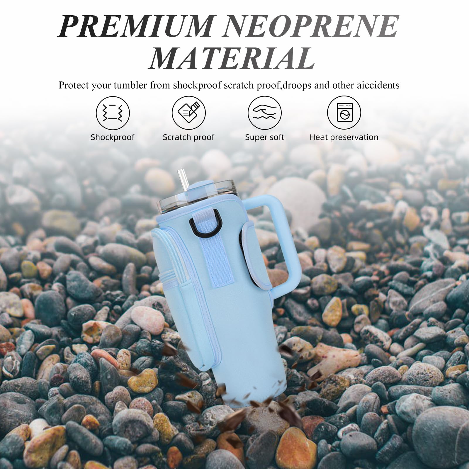 - Comfortable Neoprene Material:This water bottle holder with strap is exquisitely crafted from Comfortable materials, and the soft outer shell protects your Stanley mug from collision and scratches, offering excellent waterproofing, shock absorption, softness, lightweight, and comfortable. Free your hands with confidence