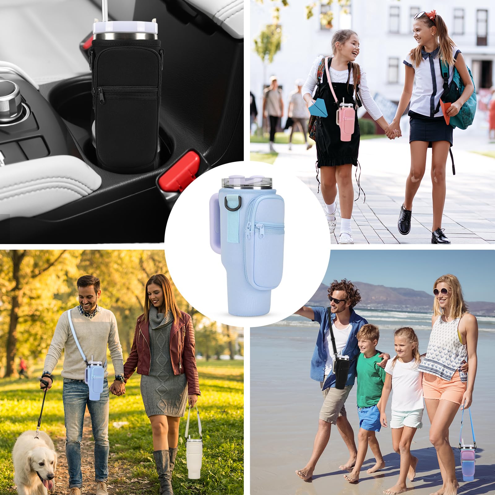 - Multi-Occasions and Perfect Gifts:This water bottle carrier is versatile and suitable for various outdoor activities such as walking, biking, camping, hiking, and more. Whether you're at the beach, this tumbler pouch is the ideal companion.This water bottle cover not only ensures your comfort when carrying it on your back but also provides protection for your phone and keeps your bottle dry. Additionally, it makes a perfect gift for stanley fans