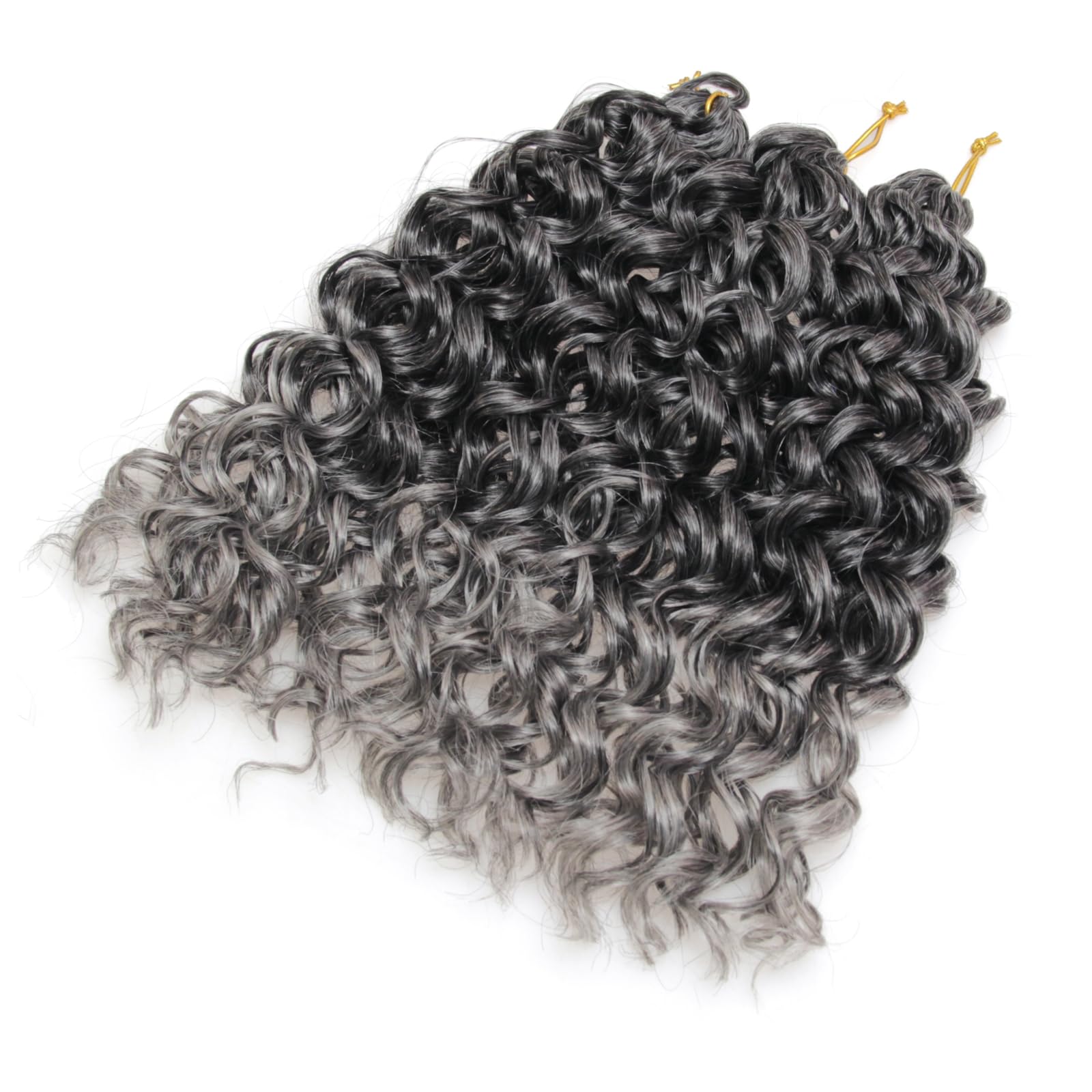 GoGo Curl Crochet Hair Water Wave Curly Crochet hair for Women Grey Synthetic Bohemian Crochet Braid Deep Wave Braiding Hair Extensions (12 inch(Pack of 6), T1B/Grey)