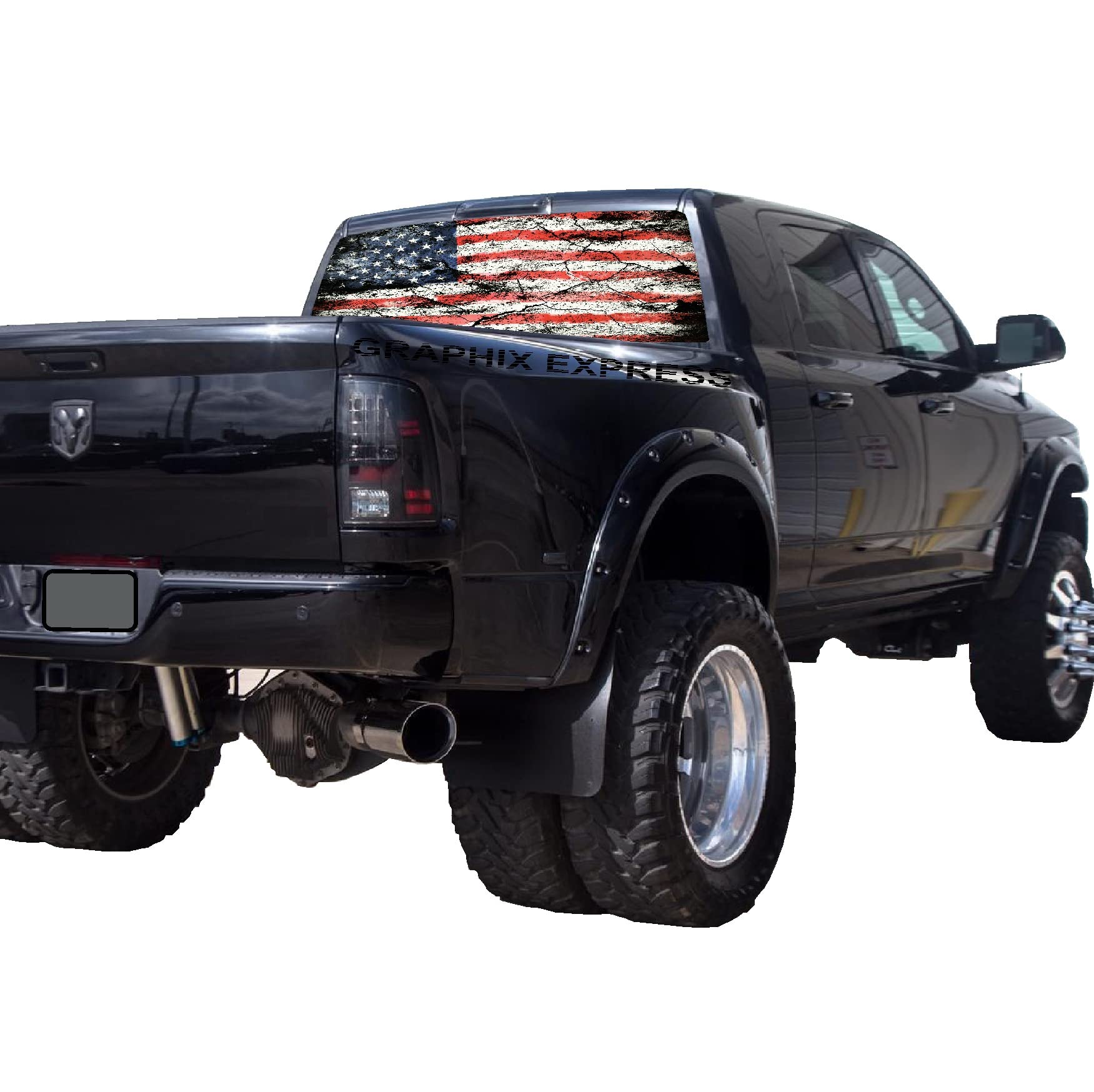 GRAPHIX EXPRESS American Flag Decal, Patriotic Red, White, Blue Vinyl Sticker for Truck Rear Window, Universal See-Through Design, Full Window Coverage, Weatherproof