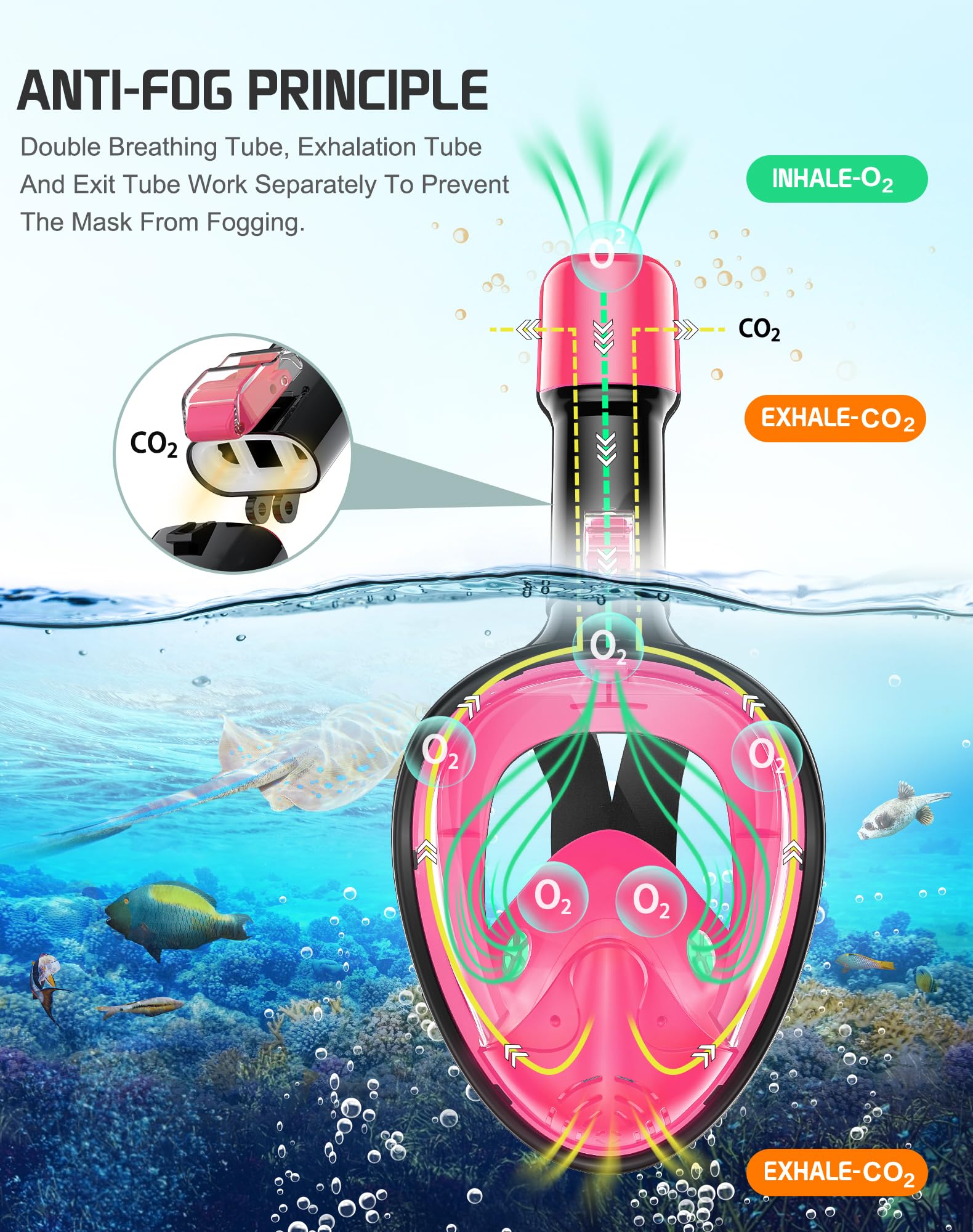 - 🌊Safety Breathing System - Greatever G1 snorkeling mask has three completely independent air channels to maximize airflow, ensuring that fresh air is always circulated in the snorkel to effectively prevent re-inhalation of exhaled CO2, thus maximizing safety and giving you a safe and comfortable snorkels experience.