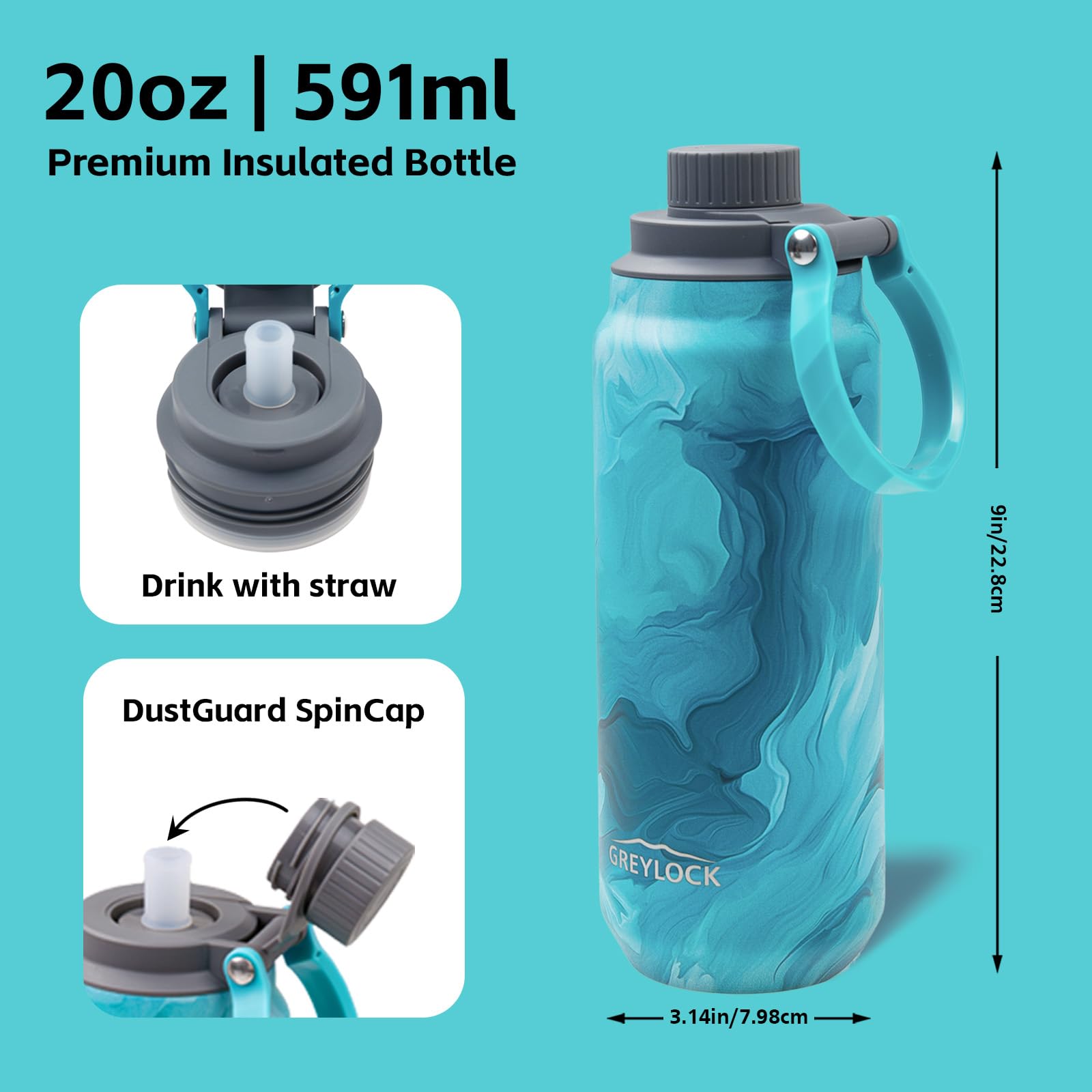 - 🌊【LIFETIME WARRANTY, ANY QUESTIONS GREYLOCK WILL REPLY WITHIN 24 HOURS】 Lifetime use; Any questions please feel free to contact us and we will reply to you within 24 hours! The product includes a 20-ounce metal water bottle with straw and handle, a spare straw, and a straw brush. Can be used by kids and adults.