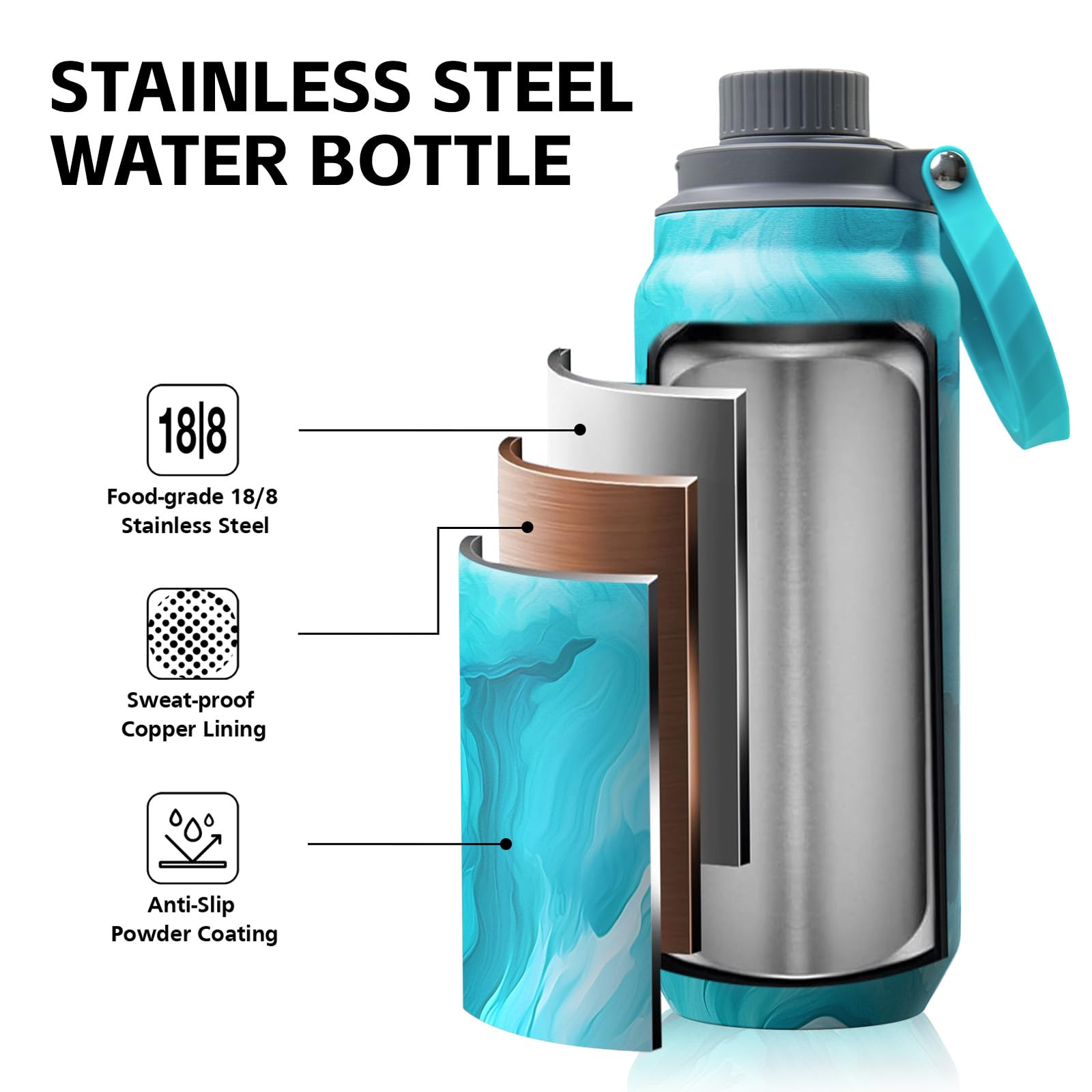 - 🌊【COLD ENOUGH! VACUUM SEALED DESIGN, TRIPLE THERMAL INSULATION】 Unlike the metal water bottle stainless steel commonly, Greylock adds copper plating to form an extra layer of insulation, and triple insulation keeps drinks 24 hours cold/12 hours hot. Ideal for longer lasting heat/cold retention during outdoor activities.