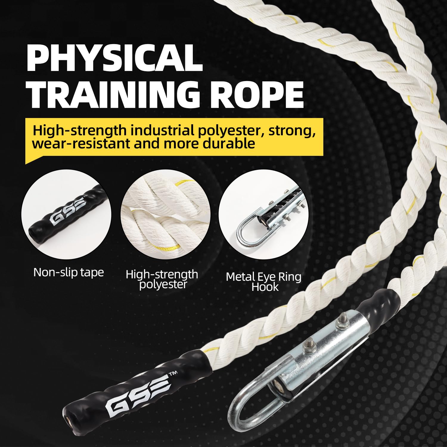 GSE Games & Sports Expert Gym Climbing Rope, Polyester Workout Rope for Indoor/Outdoor and Home Workouts. Great for Climbing Exercises, Strength Training - 6,10,15,20,25,30 Feet Lengths Available
