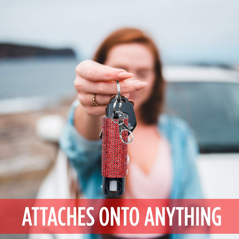 - QUICK RELEASE KEY RING: Bling it On is our flagship keychain unit, designed for those who prioritize fast and immediate access to their personal defense spray. Its streamlined design allows for easy attachment to clothing, belts, or bags, ensuring that your self-defense spray remains within arm's reach while maintaining a low profile.