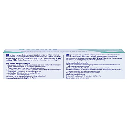 - Gum Original White Toothpaste 75ml cleans your teeth and protects them as well as gums.