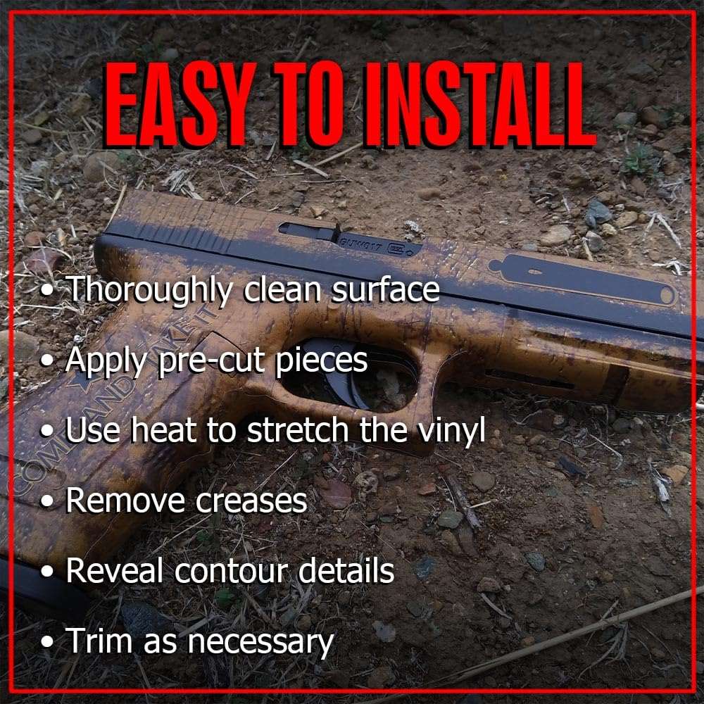 - EASY TO INSTALL VINYL WRAP β Do it yourself installation means you have creative control. Choose how much or how little to wrap with the help of our one-of-a-kind precut templates and installation videos. Use a heat gun to conform the vinyl to the surface and a hobby knife to trim to fit. Install in less than an hour. No cure time, ready for immediate use!