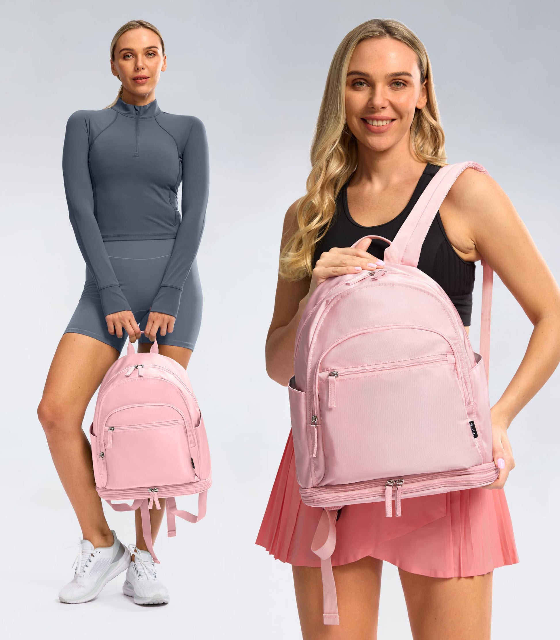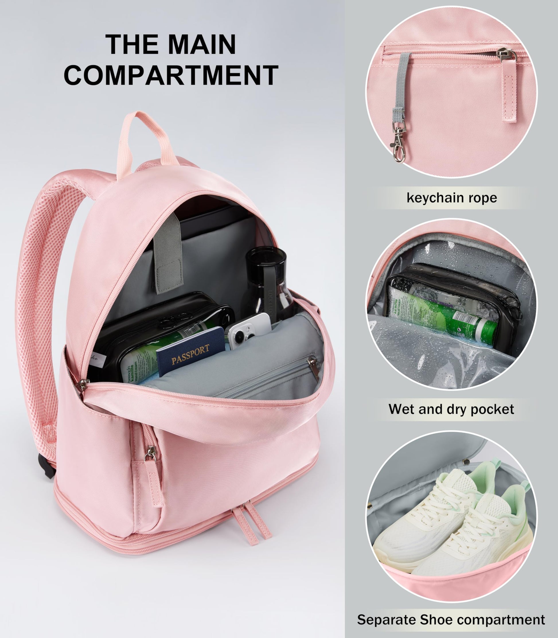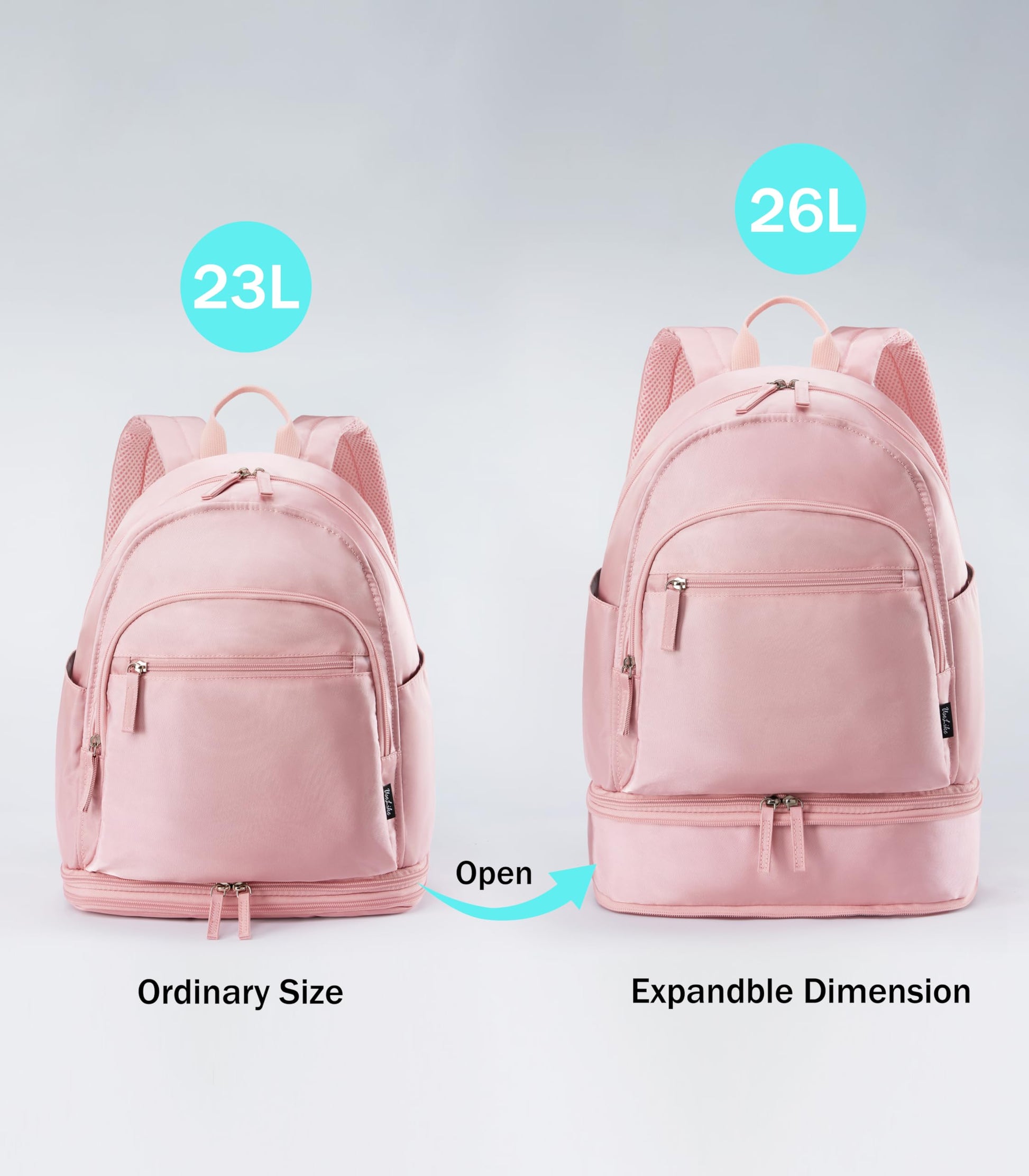 Gym Backpack for Women Small Gym Bag with Expandable Shoe Compartment Water Resistant Sports Backpack 26L Pink