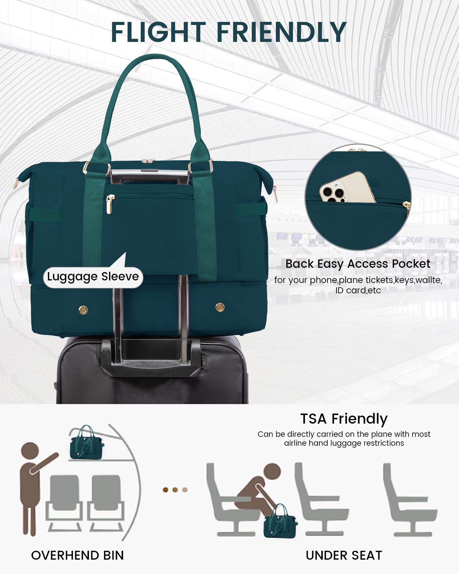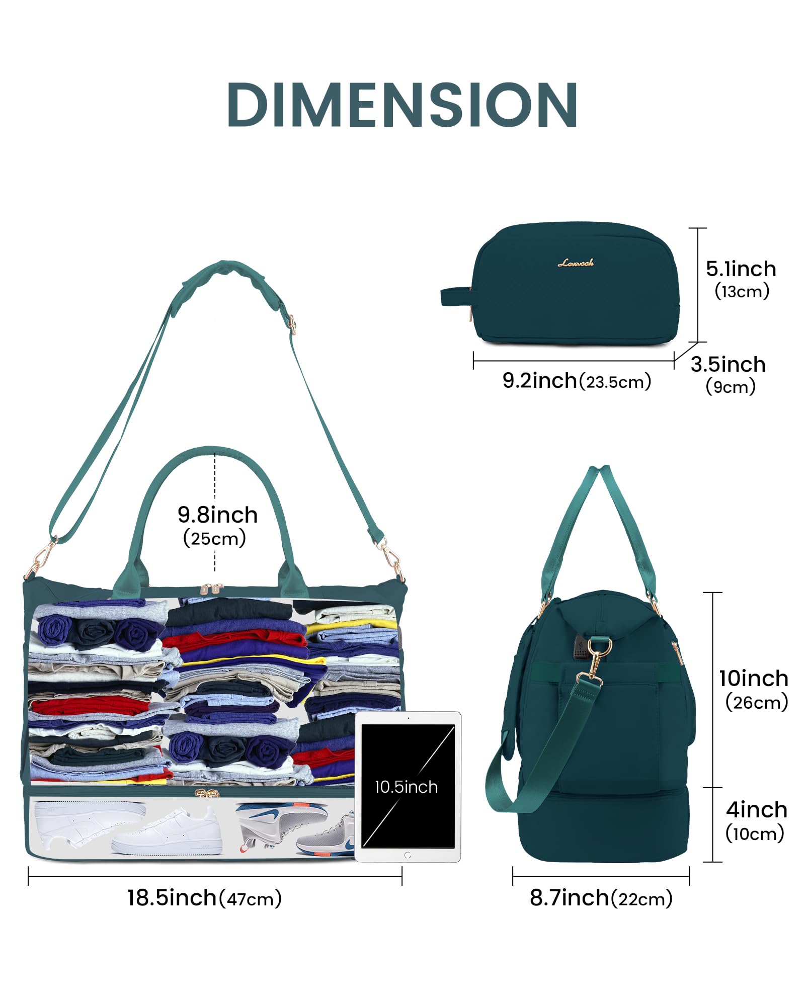 - 【LARGE CAPACITY TRAVEL BAG WITH USB CHARGING PORT+SHOE COMPARTMENT+FREE SEPERATE TOILETRY BAG】this travel bags for women combine with USB charging port,offers an easy access to charge your phone on the go. personal item travel bag with the shoe compartment,you can hold your shoes or dirty clothes for easy separation from clean clothes when traveling,The main compartment can fit 3-4days travel essential items.A large zipper pocket on the front, for storing your daily necessities.