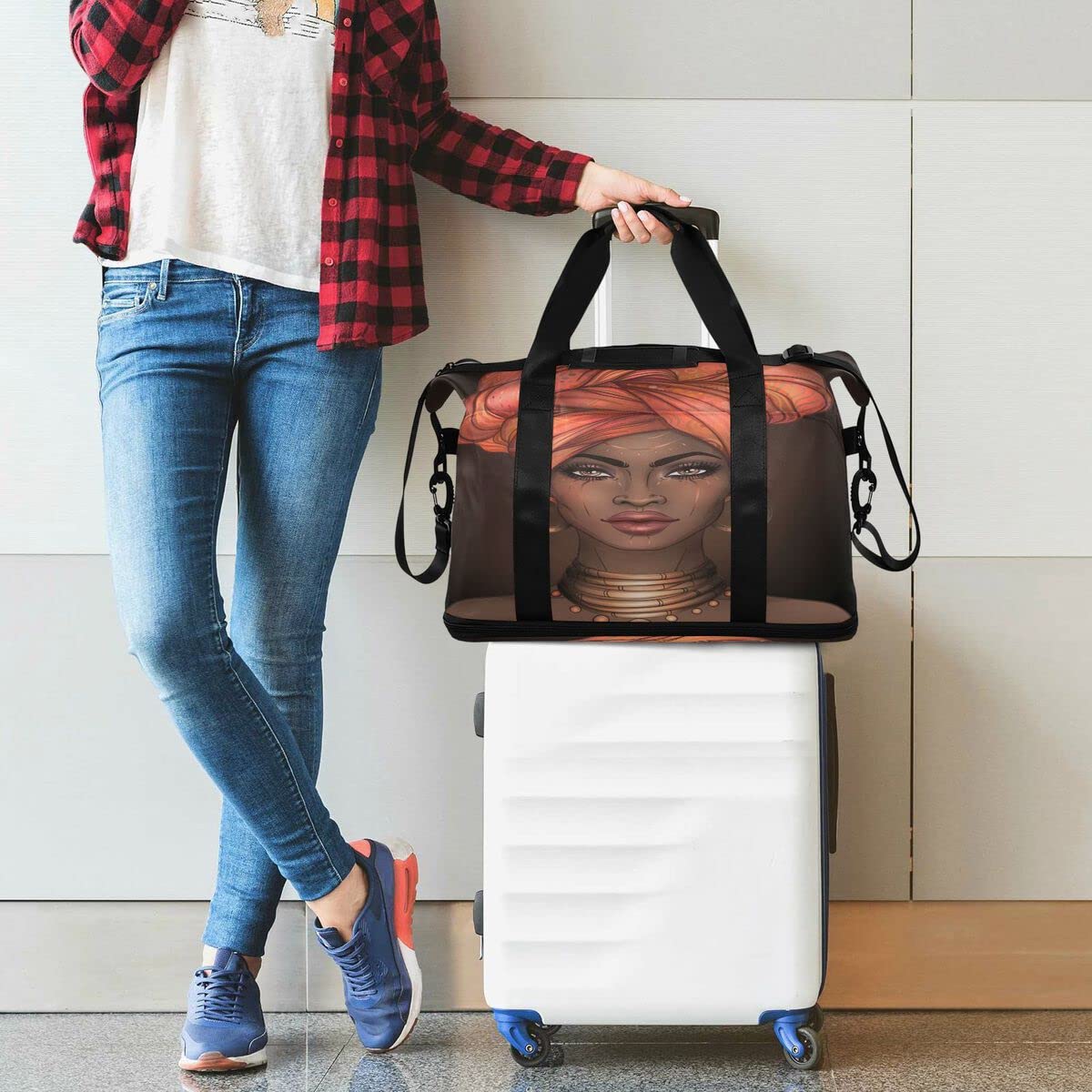 Gym Bag Sports Travel Duffel Bag Weekender Overnight Bag with Wet Pocket Shoes Compartment and Toiletry Bag African American Woman for Travel, Business,Gym, Yoga