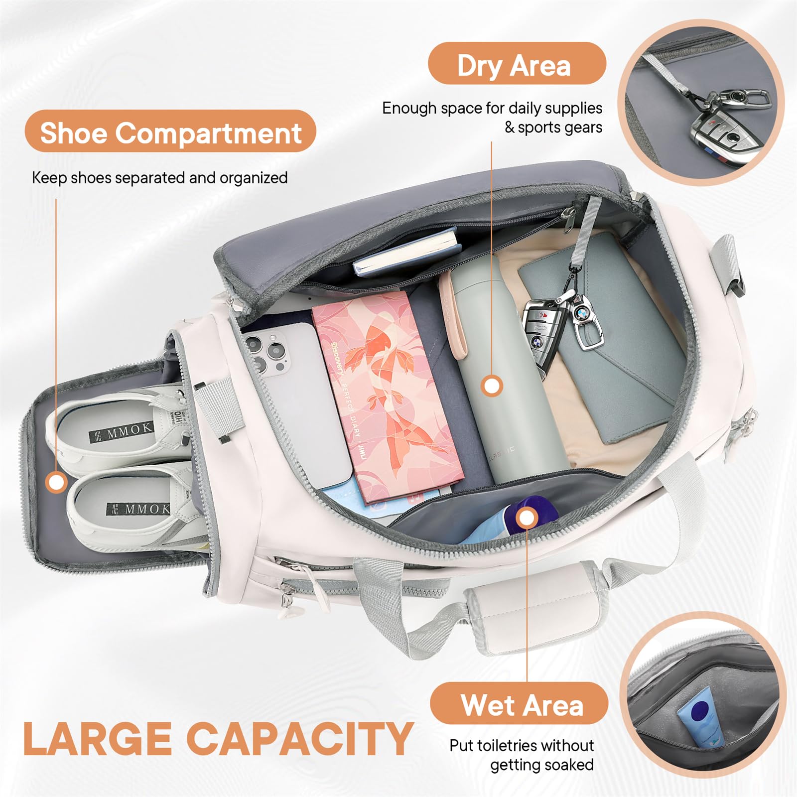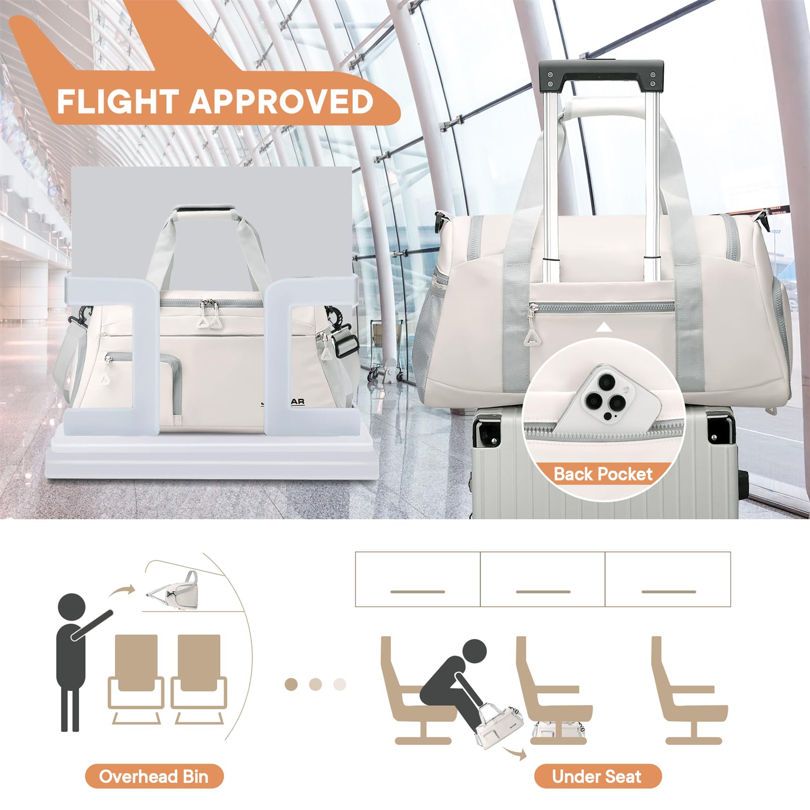 Gym Duffle Bag for Women - JELUTAR Small Carry on Travel Tote Bags Weekender Bags for Personal Item/Sports Gear with Shoe Compartment&Wetproof Pocket (Beige)
