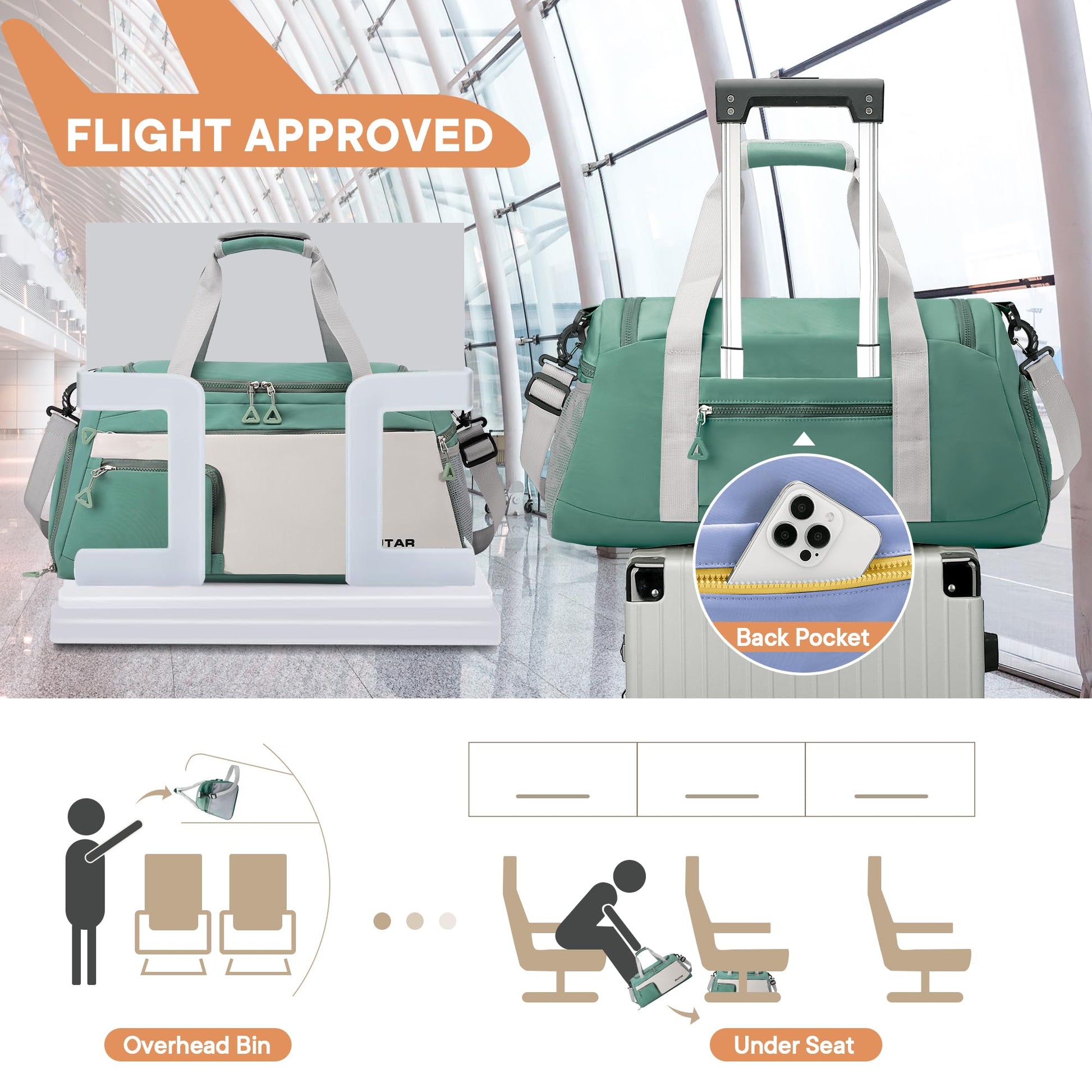 - 【WET/DRY SEPARATION】:The Wet proof pocket inside this overnight weekender bag provides a safe space for storing wet towel, toiletries, or basic swim gear without getting other items damp