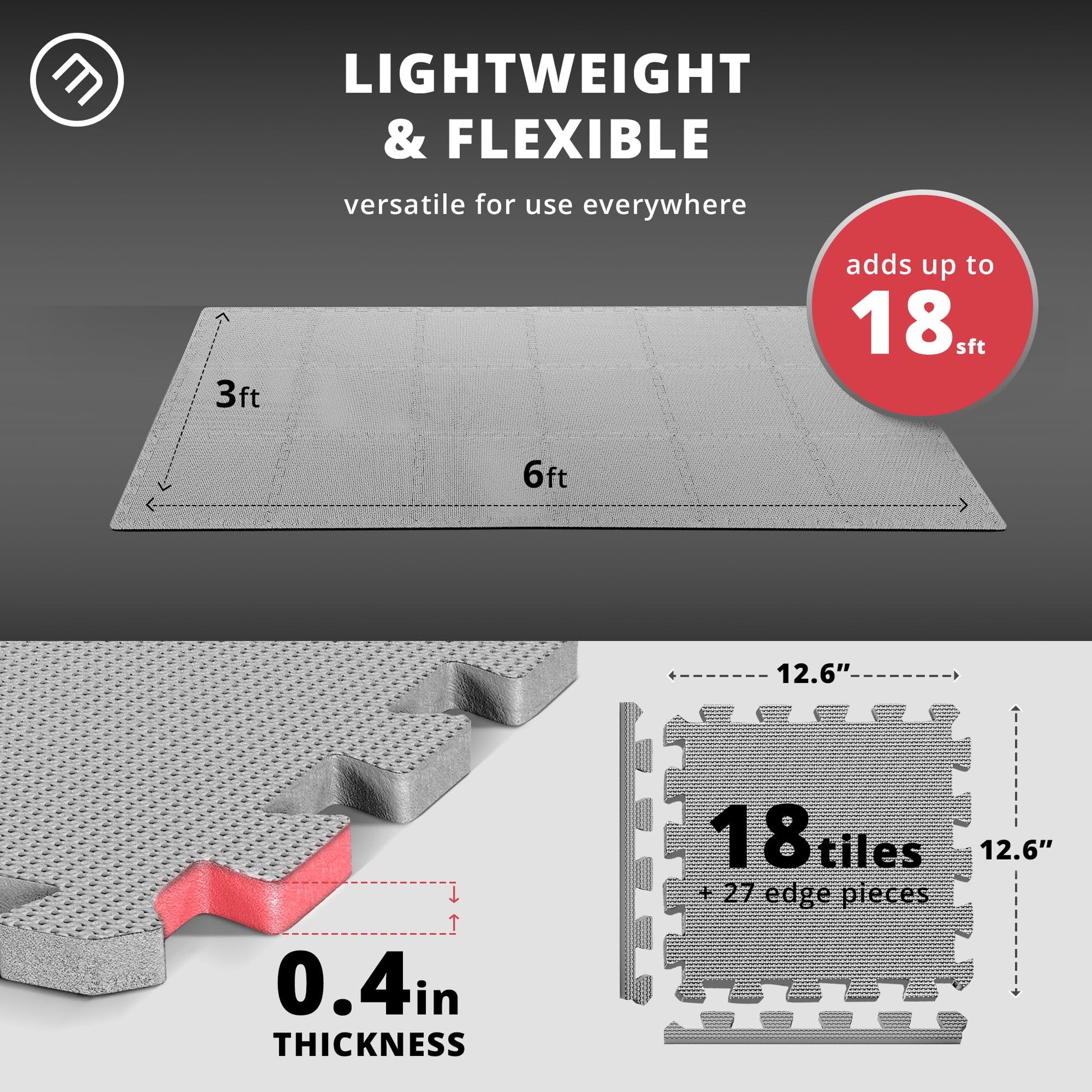 Gym Flooring Set - Interlocking EVA Soft Foam Floor Mat, 18 Pieces Puzzle Rubber Tiles Protective Ground Surface Protection, Play Workout Exercise Mats Underlay Matting Sports Pool Home Fitness Garage