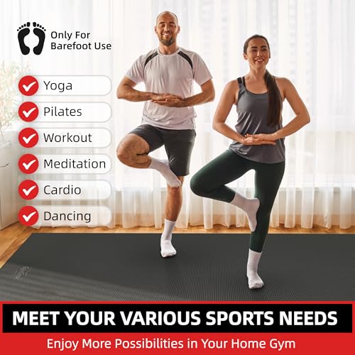 - 3-Layer Design: The 3-layer system in yoga mat thick is designed to provide an optimal yoga experience; the wear-resistant top ensures longevity, allowing for long-term use; the cushioning and shock absorption mid-layer of large yoga mat thick extra wide and long reduces joint impact, providing extra comfort; the anti-slip bottom of home gym flooring ensures stability and safety by preventing the home gym mat from sliding during practice
