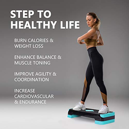 - Two Adjustable Hight: Comes with 26.5' x 10.5' wide platform and a set of risers. With 2 adjustable height (4 inches - 6 inches), perfect for any levels of user. You can adjust the height according to your preference and achieve your exercise intensity.