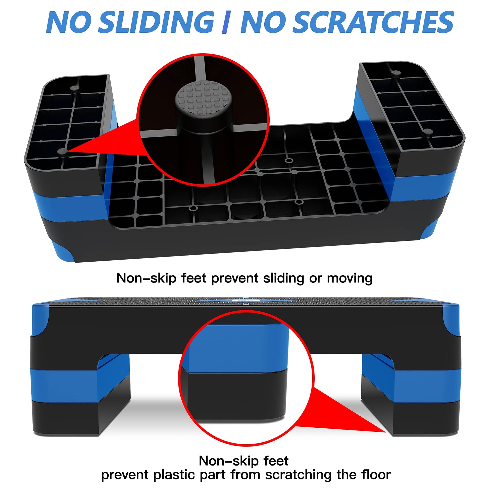 - ANTI-SLIP & NO SCRATCHES: The circular grooves and non-slip textured top of GYMMAGE Workout Stepper provide more grip and traction for exercise, prevent you from slipping/sliding. And leave you feeling safe and your movements worry free. The 4 non-slip rubber feet provide stable performance and leave no scratches