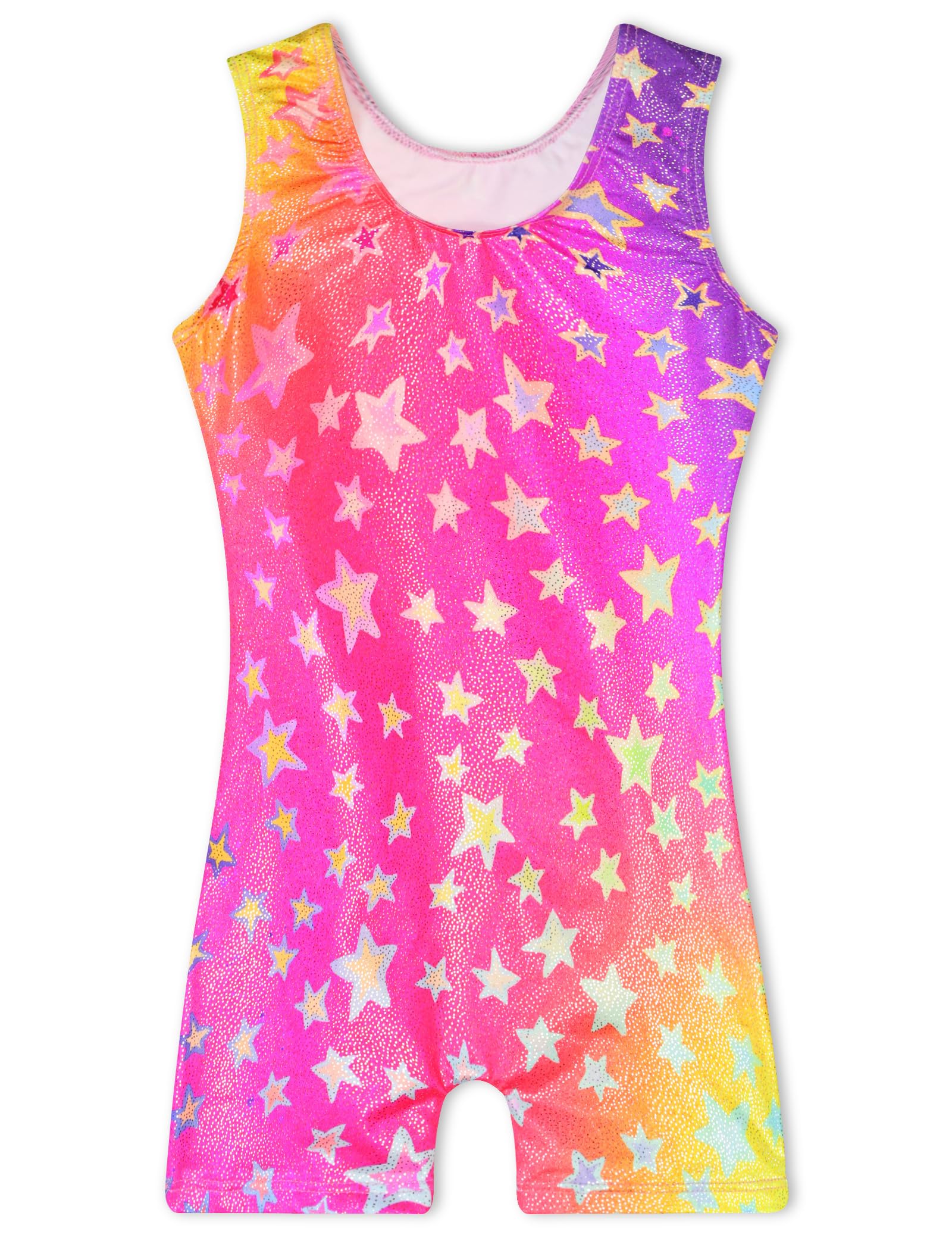 Gymnastics Leotards for Girls 5-6 Years Old Sparkly Hotpink Purple Stars One-Piece Tumbling Biketard Unitard