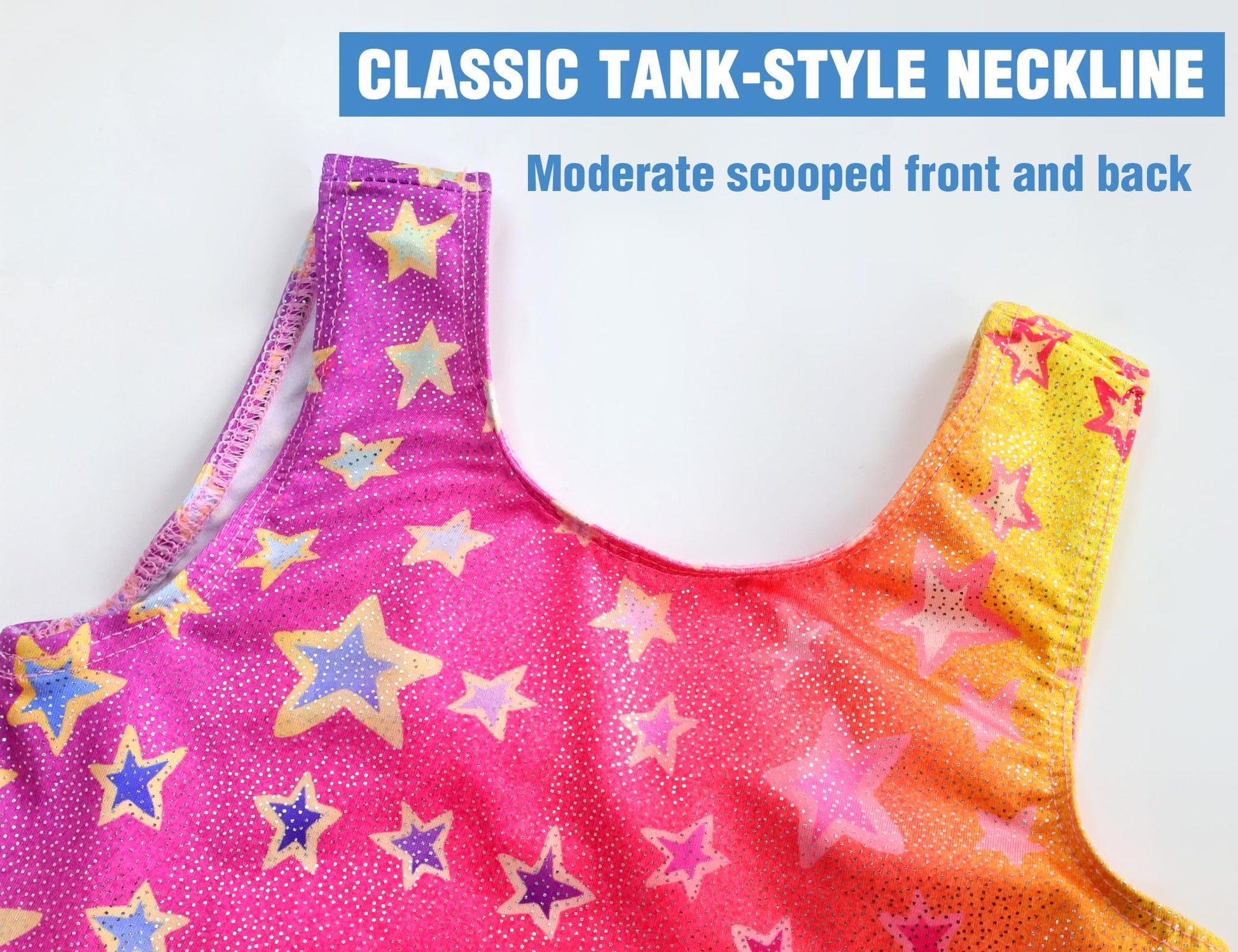 - Classic Modern Popular Sleeveless Gym Biketard with Short : Classic bra-friendly scoop neckline in front and back, Legging, fashion glitter design