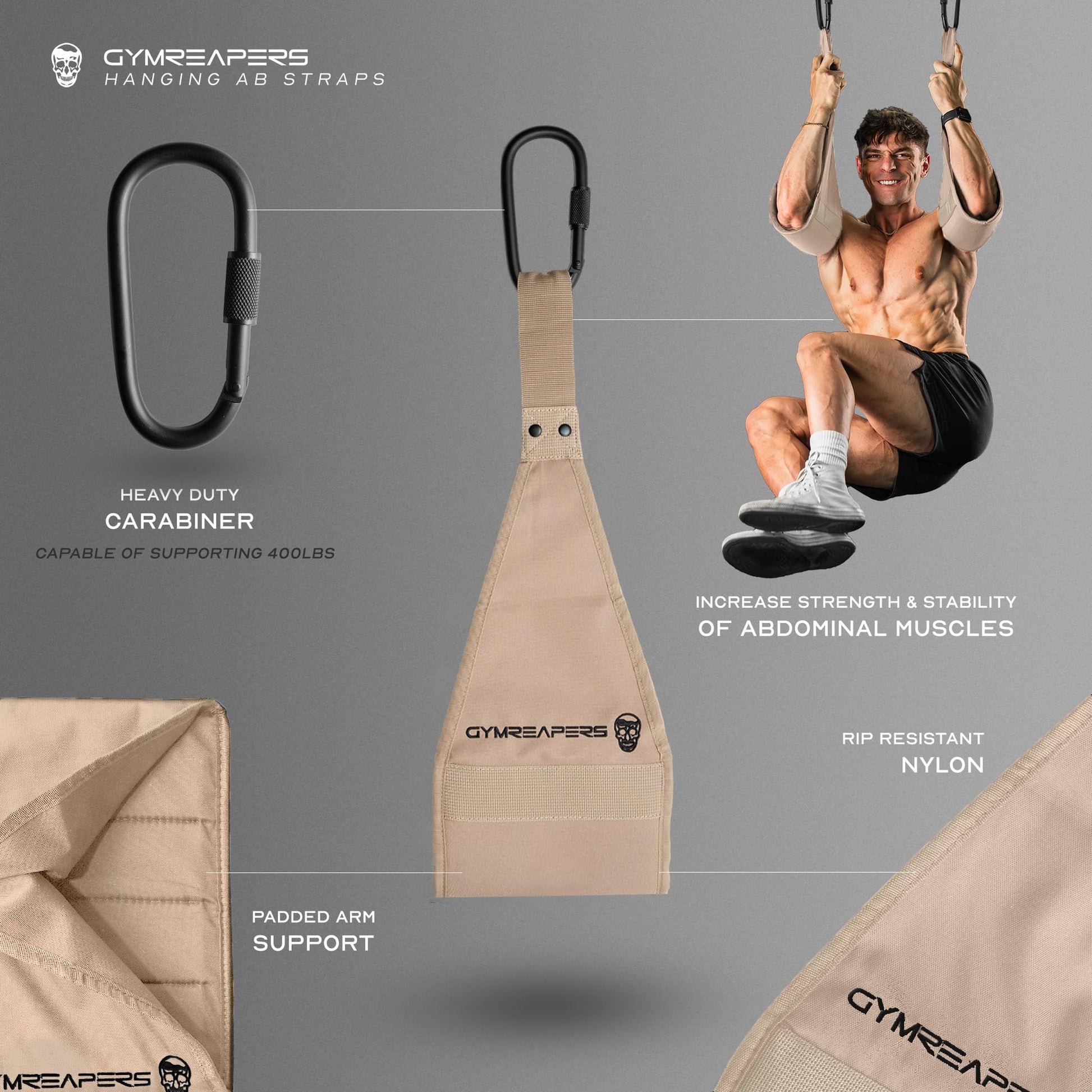 Gymreapers Hanging Ab Straps For Core Strength and Abdominal Training - Padded Adjustable Arm Supports For Bodyweight Exercises (Tan)