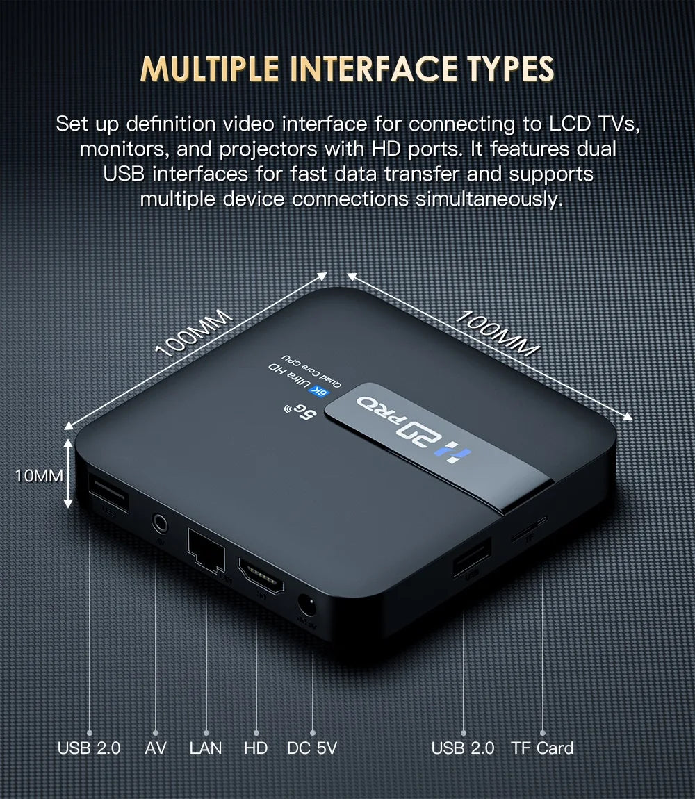 H20PRO Smart Android TV Box Android 10.0 16GB 2.4&5G WIFI 4K Media Player TV Box Android Play Store Very Fast 1080P Set Top Box