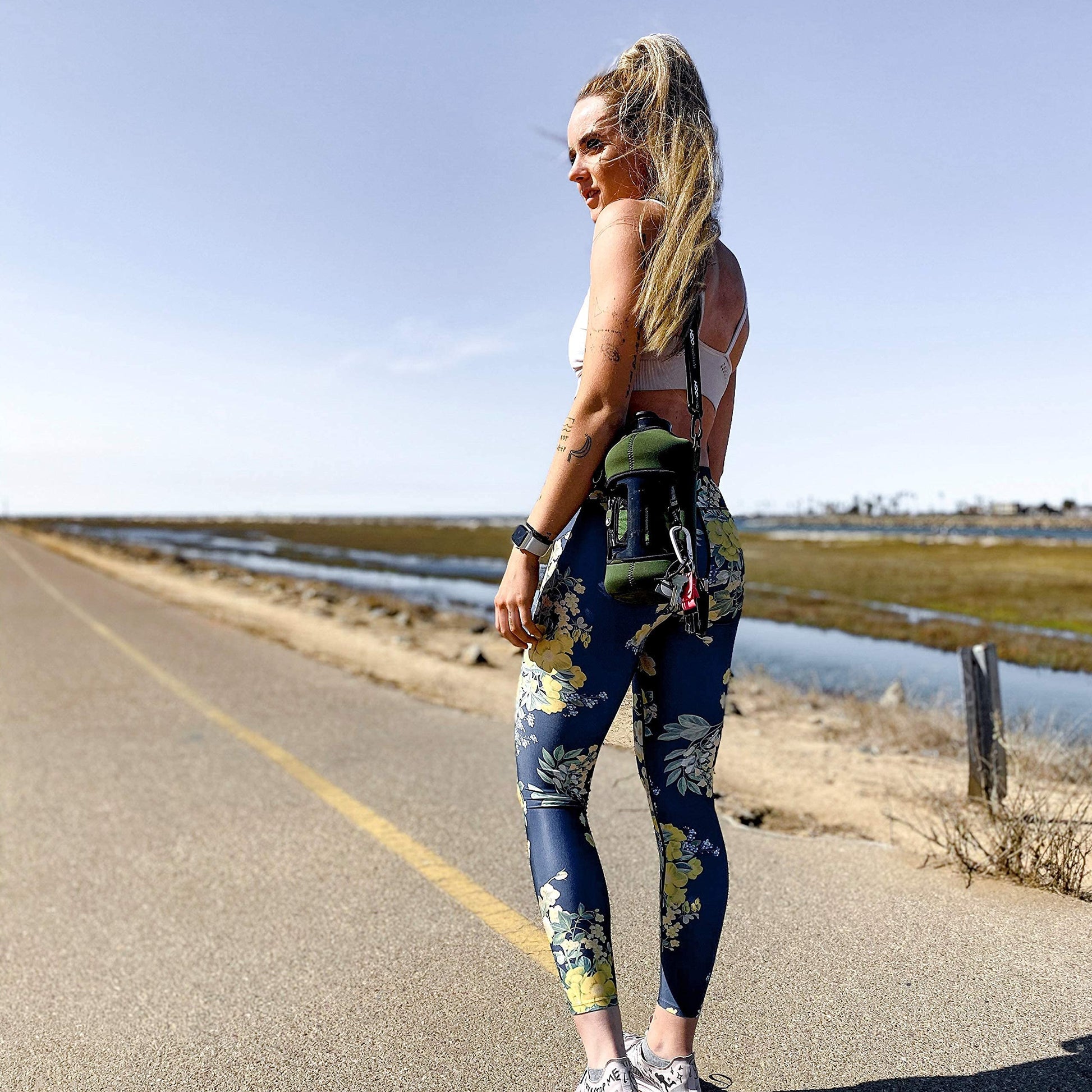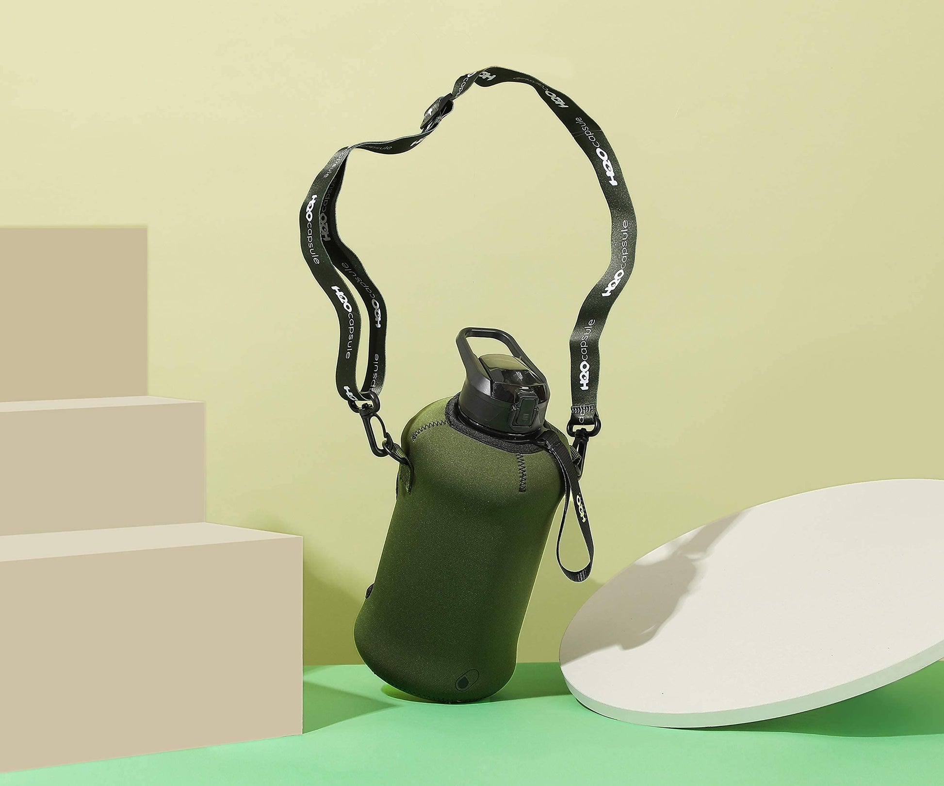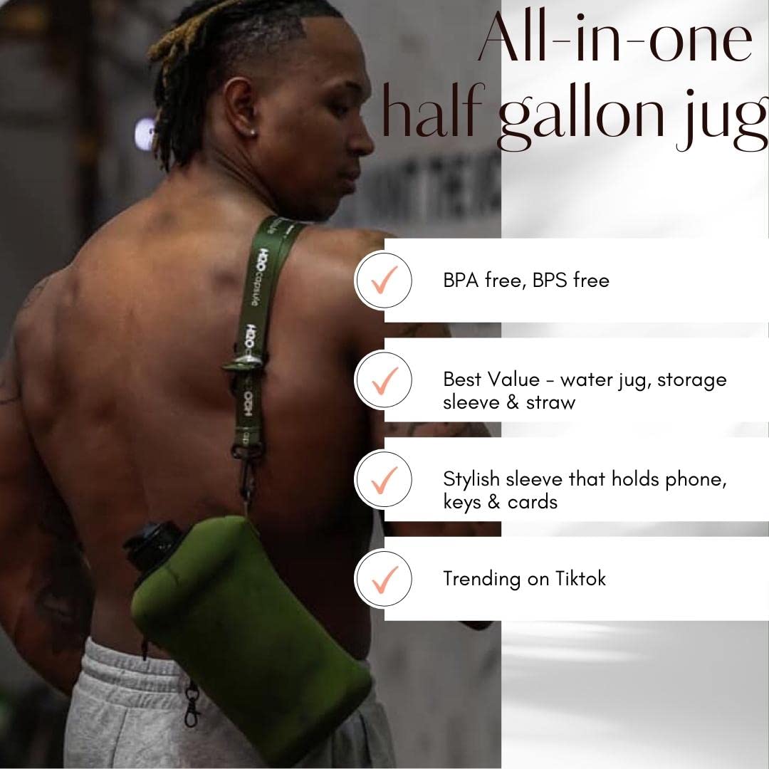 Details: The Encased Drink Bottle That Holds Your Stuff While YOU Work Out!It’s a bodybuilding, yoga lovers and gym bunny conundrum –where DO you put your cell phone, keys, ID and cards when you train? Who wants to leave their phone in a locker, when it holds those pumping workout tunes! You CAN carry it but that fumbling and leaving it on filthy gym floors is not cool, right?Well, it’s not a problem for H2O Capsule. The FIRST and ONLY water bottle with a storage holder for keeping your stuff safe while YOU get your sweat on (and then re-hydrate)! The thick 5mm insulated sleeve protects your bottle, while carrying your things! There’s a band for your phone, slot for your cards and keyring for your keys behind the container’s large handle, and the sports bottle’s sleeve also features a removable shoulder strap, making carrying your water even easier and saving space in your gym bag.And here’s what else you’ll love…This half gallon water bottle is now made of 30% thicker plastic, and comes with a leak-proof and dust-proof covered straw lid which helps protect the mouthpiece, and flips open with a click of a button! The2.25” wide mouth is perfect for adding ice cubes to your sports drink, and the insulated 5mm thick neoprene sleeve helps them stay cold for longer.The H2O Capsule – Gym Bottle AND Heavy Duty Storage! - Half Gallon Water Bottle with Handle- 5mm Thick Soft Neoprene Thermal Sleeve WITH Patented Cell Phone Holder, Keyring AND Card Holder- Leak-proof Covered Straw Lid with Wide Mouth Access (2.25” wide)- BPA and BPS Free, Food Safe Half Gallon Jug- Available in Multiple Colors and Designs- 2.2 Liter Water Bottle Supported by our 12-Month WarrantyLet everyone else struggle with their carrying their stuff in the gym… because you no longer have to with the revolutionary H2O Capsule!