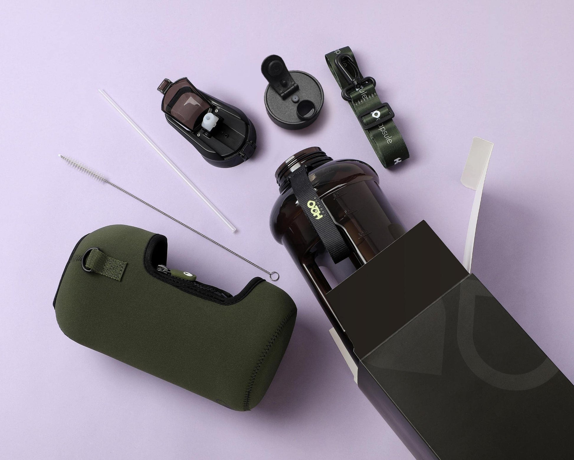 - HALF GALLON HYDRATION WITH COVERED STRAW LID: The extra large 2.2L / 74 oz plastic jug holds all the water you need to stay hydrated while you exercise. The reusable half gallon comes with a leak-proof & dust-proof covered straw lid, which helps protect the mouthpiece and flips open with a click of a button. The straw-lid is air-sealed: Run straw brush through mouth piece before initial use. The H2O Capsule bottle with storage sleeve comes with a bonus straw cleaning brush.