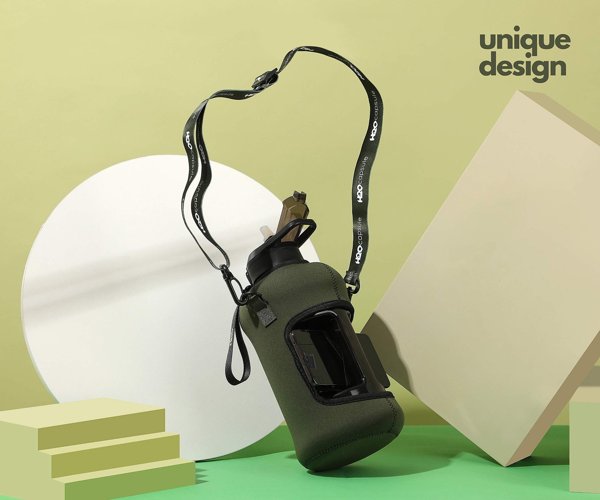 - BUILT FOR GYM LIFE: No more wrestling with your keys, or leaving your phone on the dirty gym floor. The H2O Capsule is the only sports water bottle with a protective sleeve that doubles as handy storage! Hold your phone, keys and cards while you work out and look good doing it.